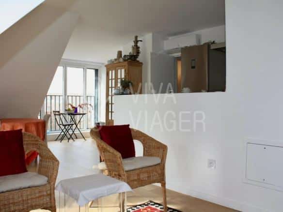 Viva Viager vous propose la vente en nue-propriété avec réserve d’usufruit d’un appartement de 2/3 pièces de 55,54m² carrez (73m² au sol) pondéré à 63m² au 6ème et dernier étage d’un immeuble récent de 2017.