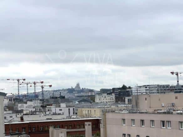 Situé au 6ème et dernier étage avec ascenseur. l’appartement offre une vue dégagée sur les toits de Paris et un aperçu du Sacré-Coeur.