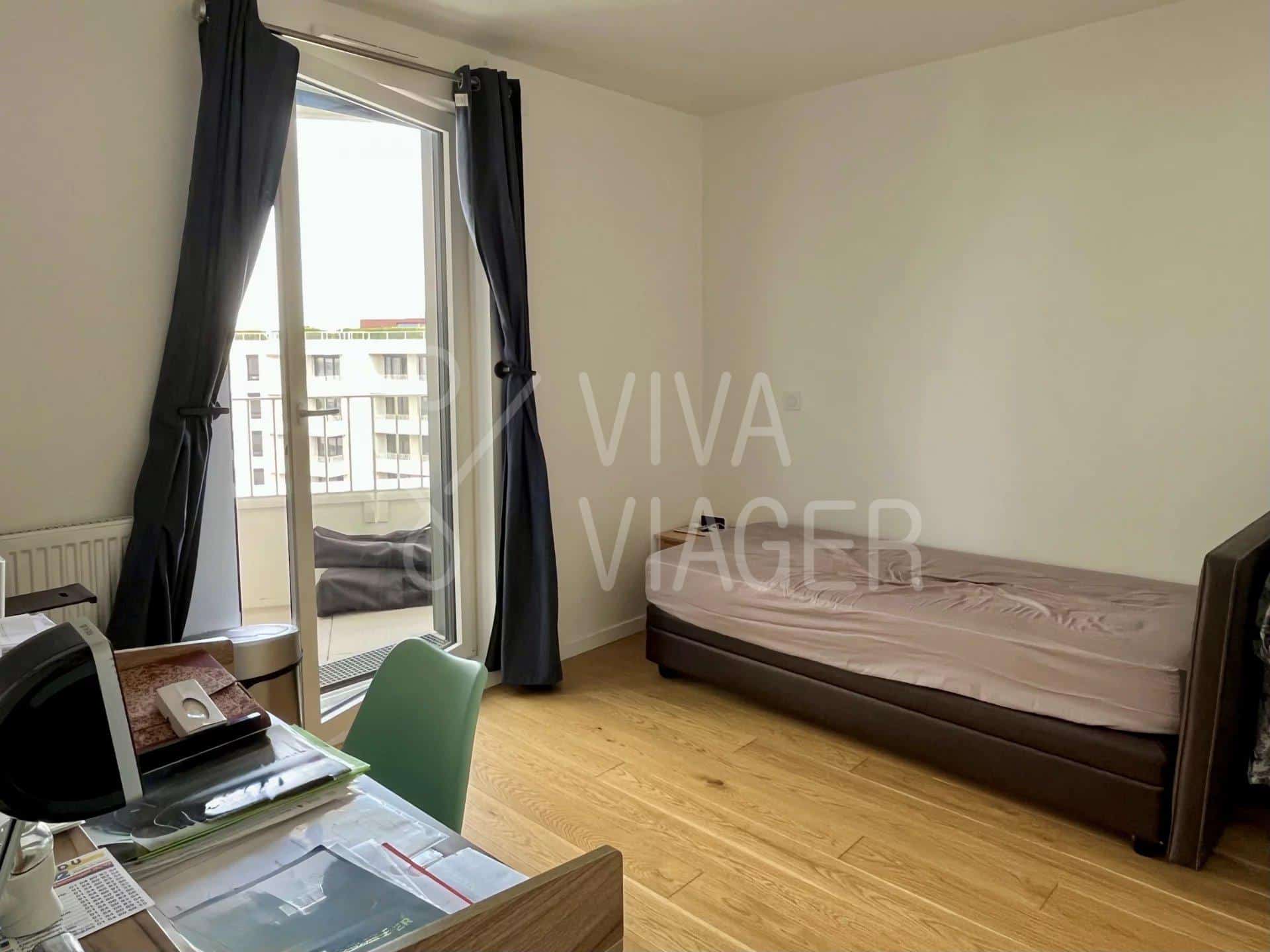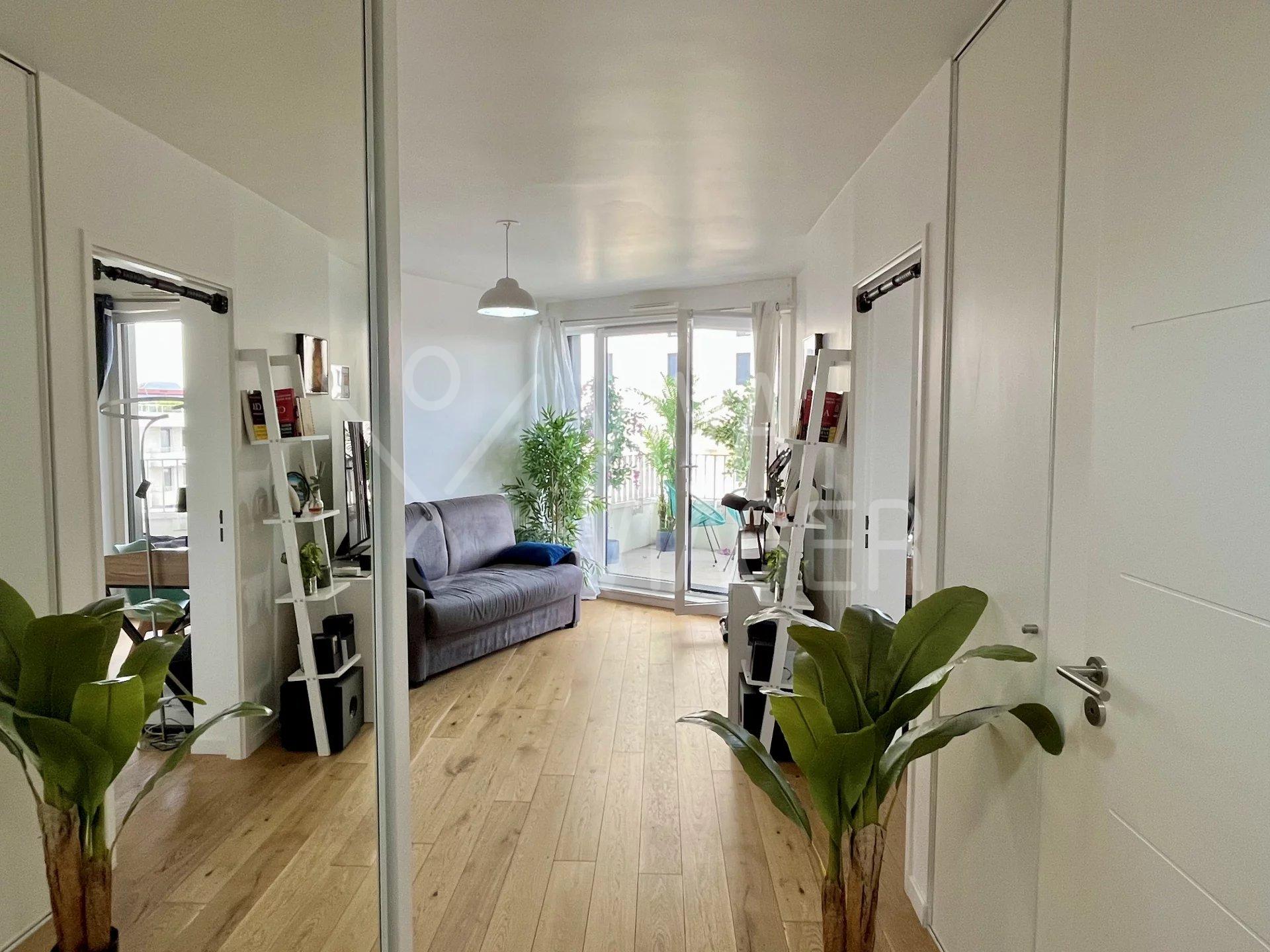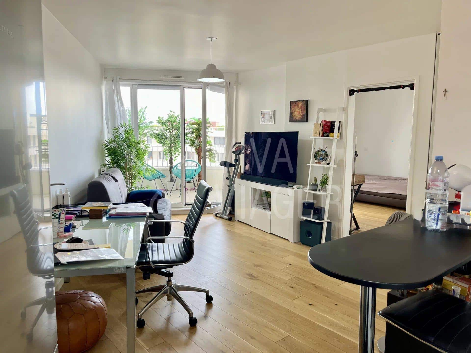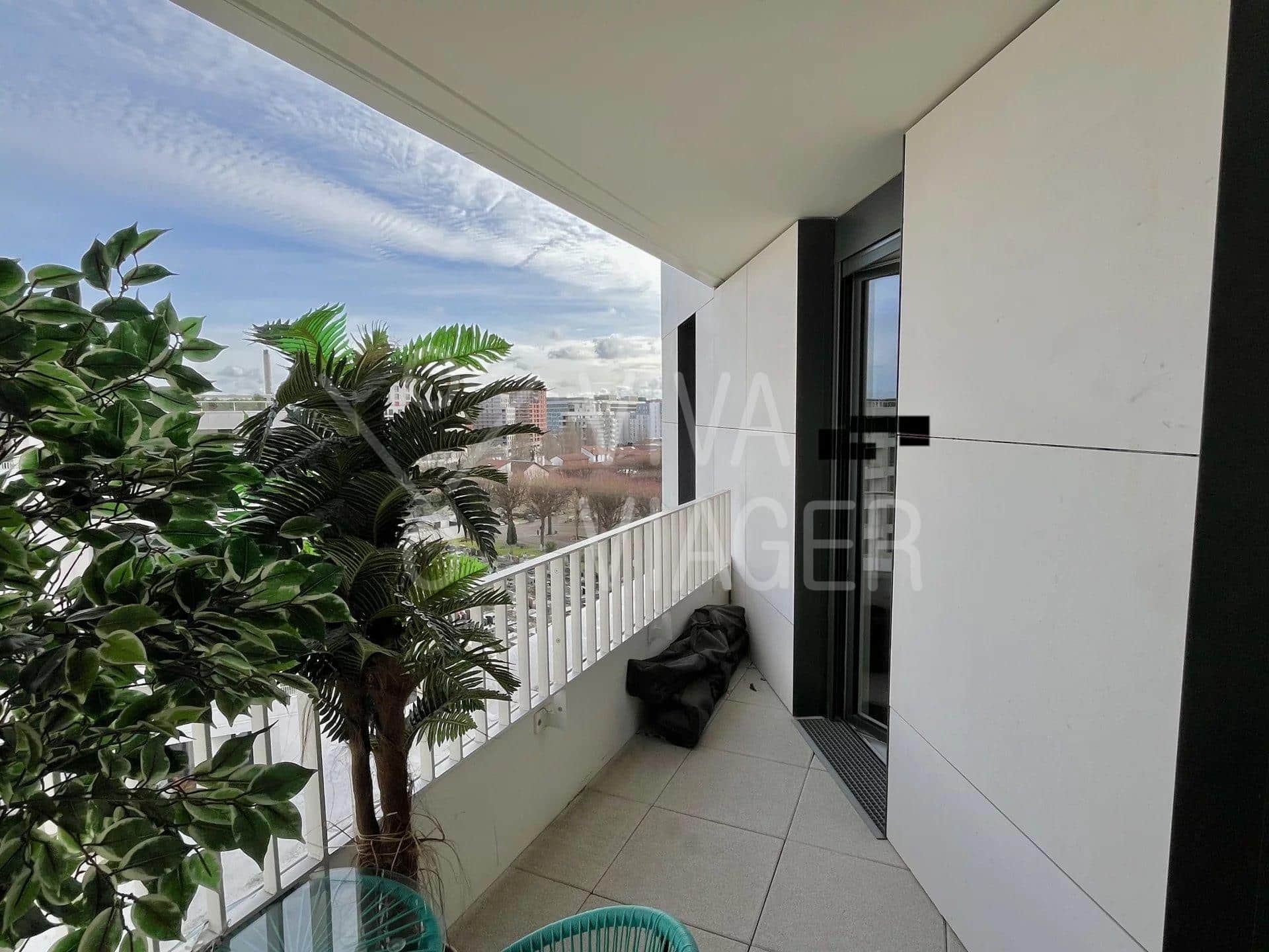 L’appartement se compose d’une entrée avec rangements, d’un séjour lumineux avec cuisine ouverte, d’une chambre et d’une salle de douche avec WC. Les deux pièces ouvrent sur un grand balcon de 7 m², avec vue dégagée, au calme du jardin paysagé de la copropriété. Un emplacement de parking en sous-sol complète le bien.