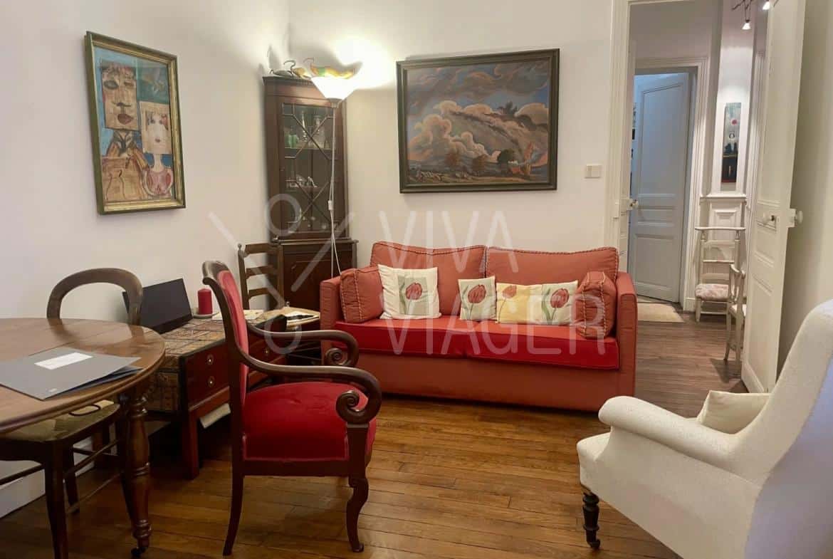 Ce charmant appartement de 2 Pièces de 43,15m² carrez avec une grande hauteur sous plafond et moulures, se compose d’une entrée, un séjour, une chambre, un rangement, une cuisine, une salle de bains, un WC séparé.