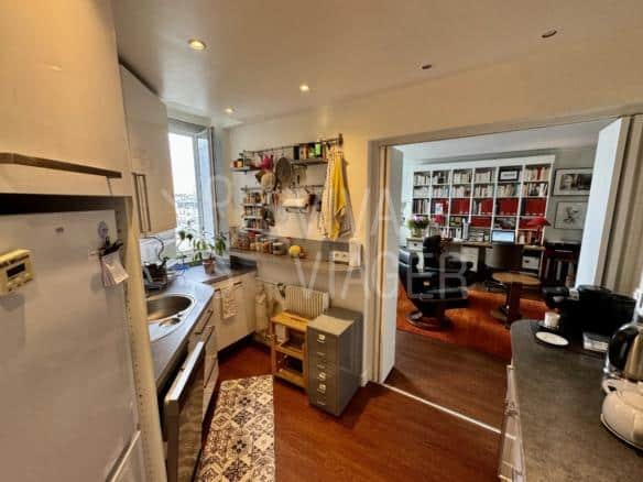 Entre la Fondation Cartier et le Parc-de-Montsouris, à proximité des commerces et des transports (métro St Jacques à 3 minutes à pied), rue Emile Dubois, au 9ème étage d’un immeuble en parfait état, nous vous proposons un appartement refait à neuf, calme, lumineux et orienté sud-ouest, d’environ 46 m².