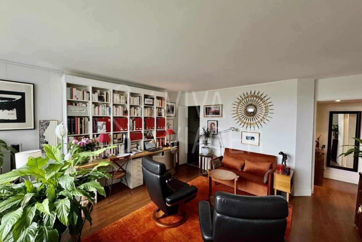 Entre la Fondation Cartier et le Parc-de-Montsouris, à proximité des commerces et des transports (métro St Jacques à 3 minutes à pied), rue Emile Dubois, au 9ème étage d’un immeuble en parfait état, nous vous proposons un appartement refait à neuf, calme, lumineux et orienté sud-ouest, d’environ 46 m².