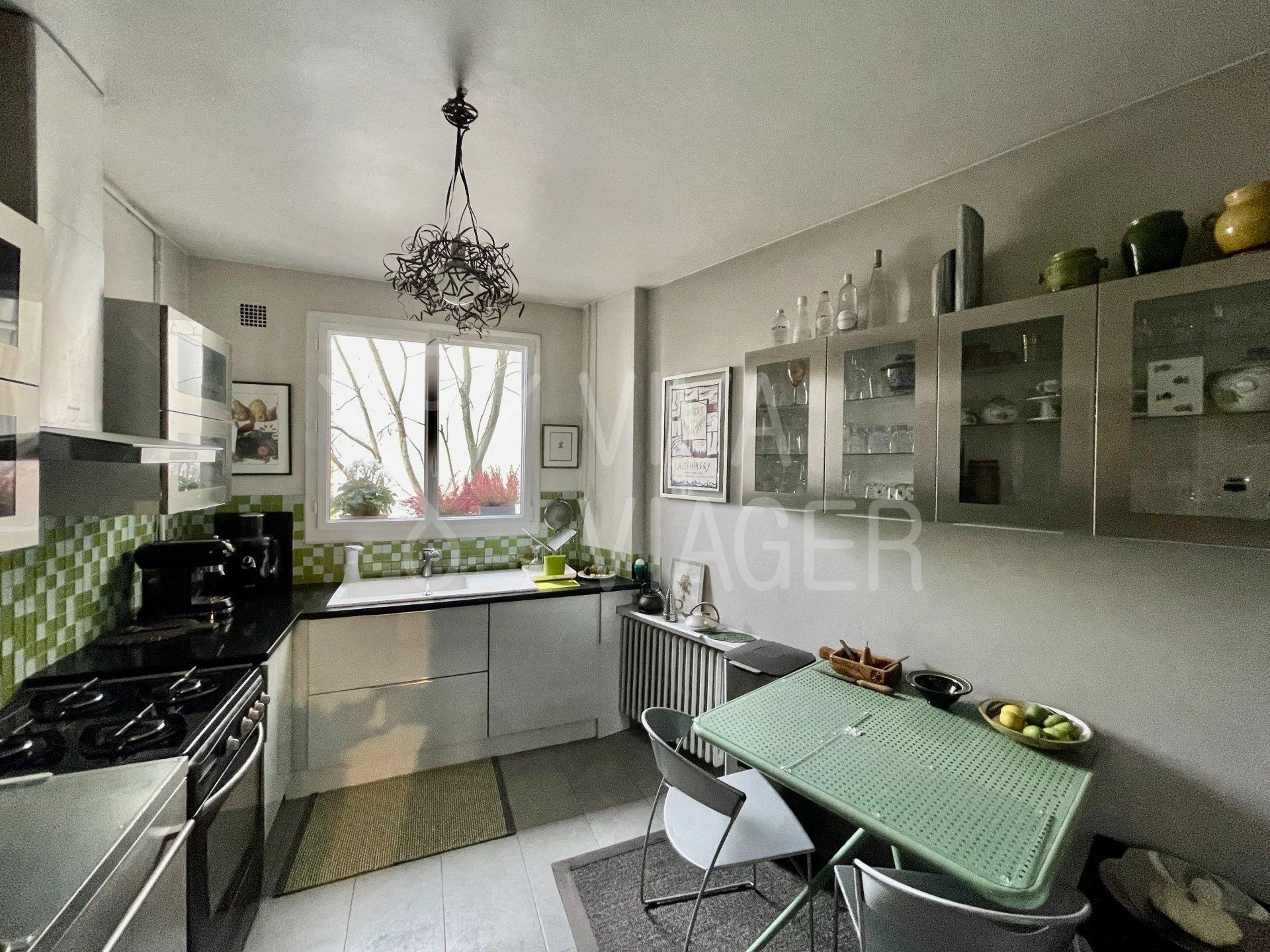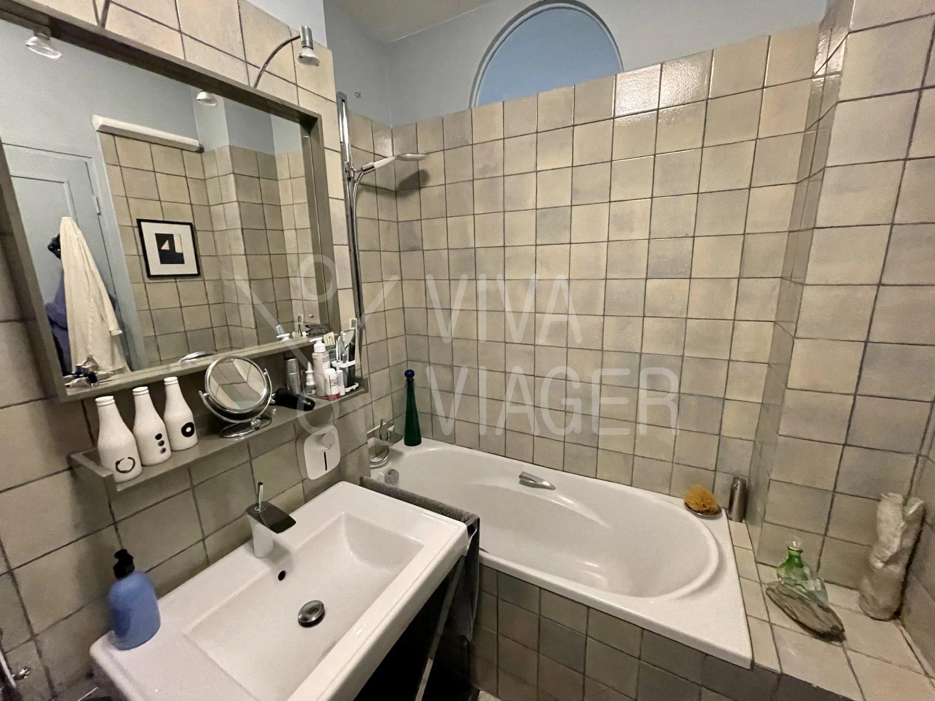 Un appartement traversant de 2 pièces de 57 m2, avec parquet comprenant : une entrée, une cuisine séparée, un WC séparé, une SDB, un dressing, un séjour et une chambre. Une cave au sous-sol complète le bien
