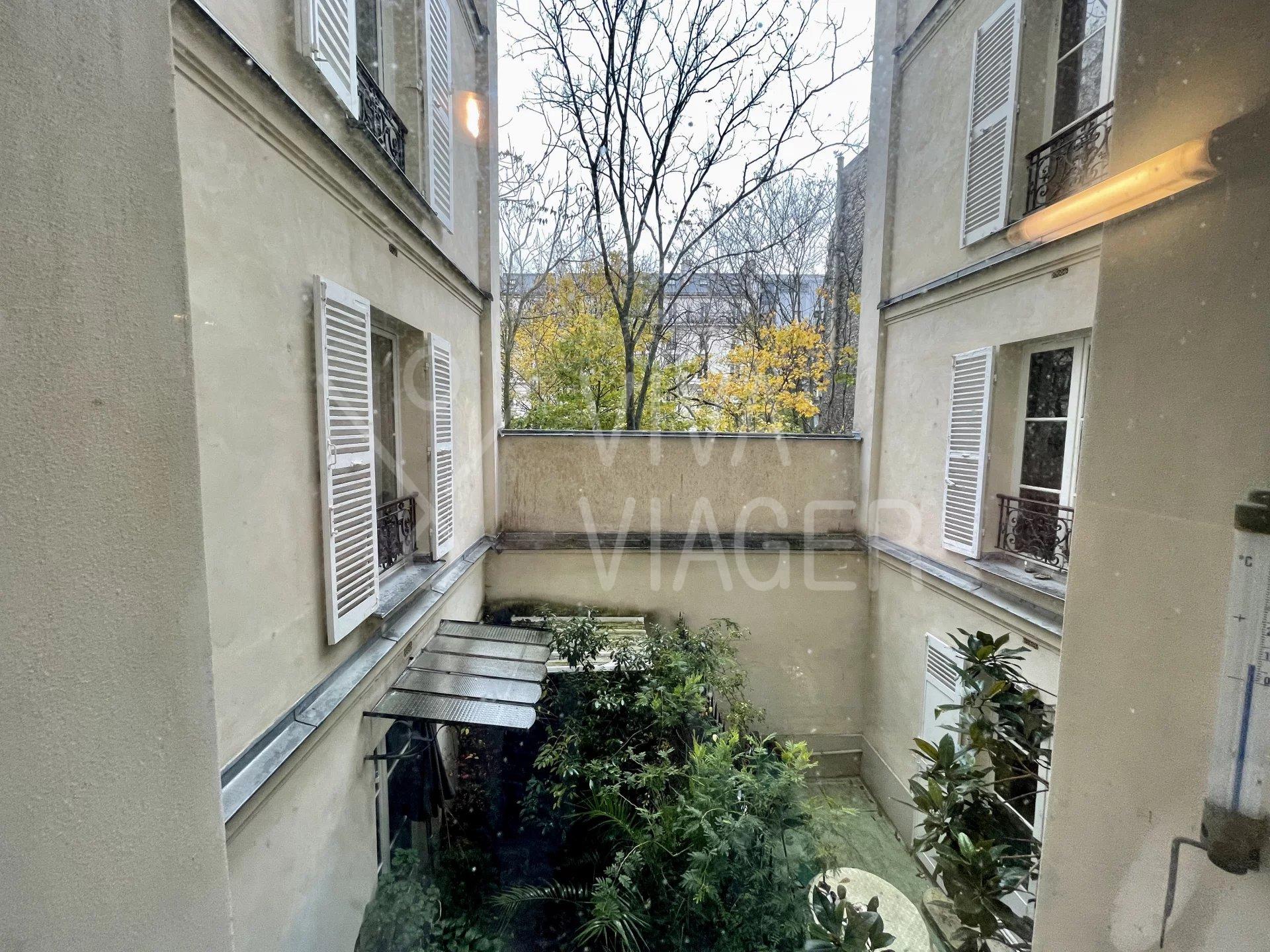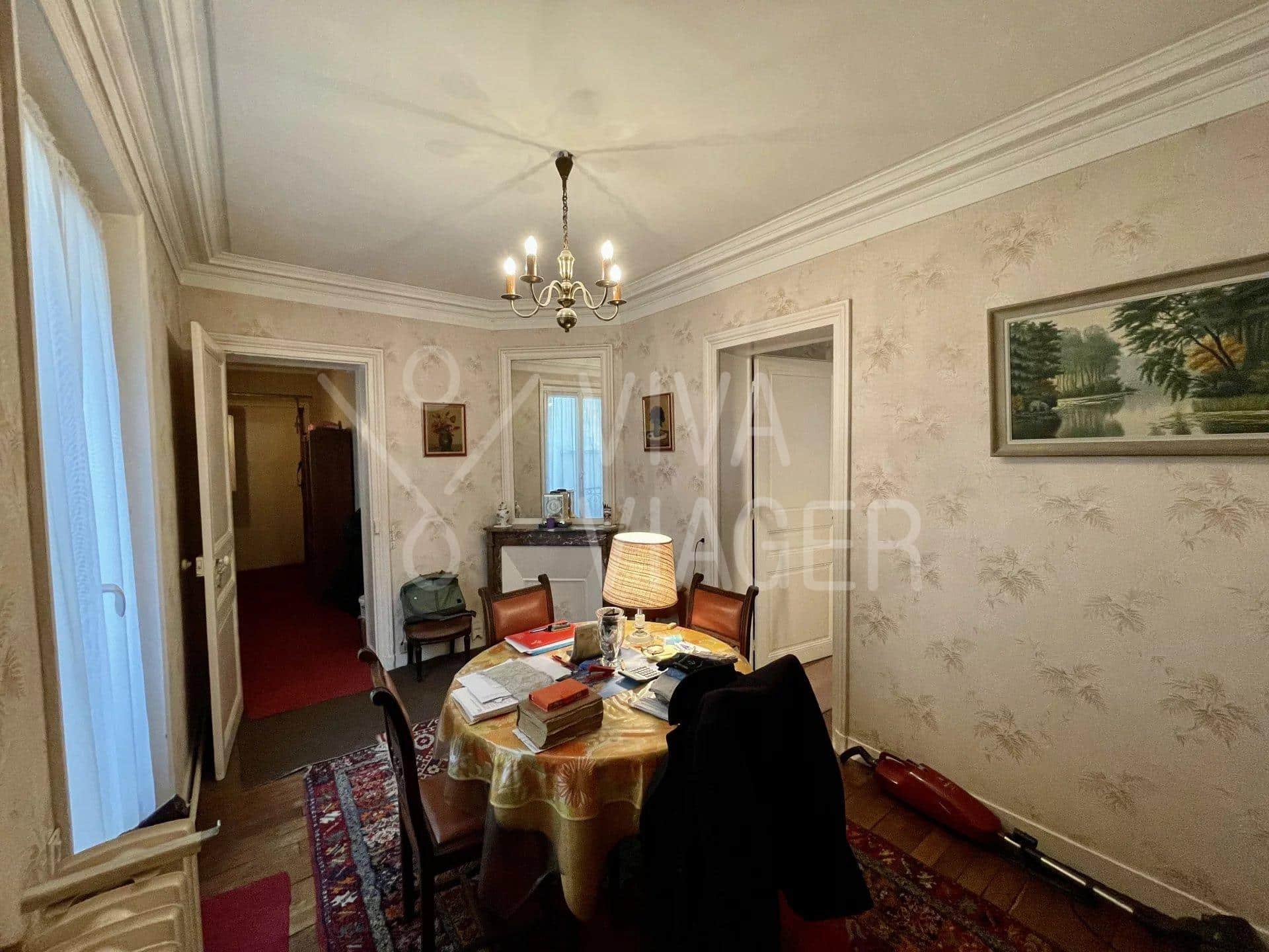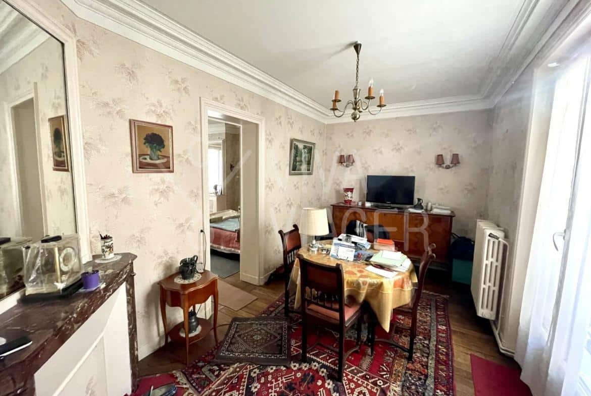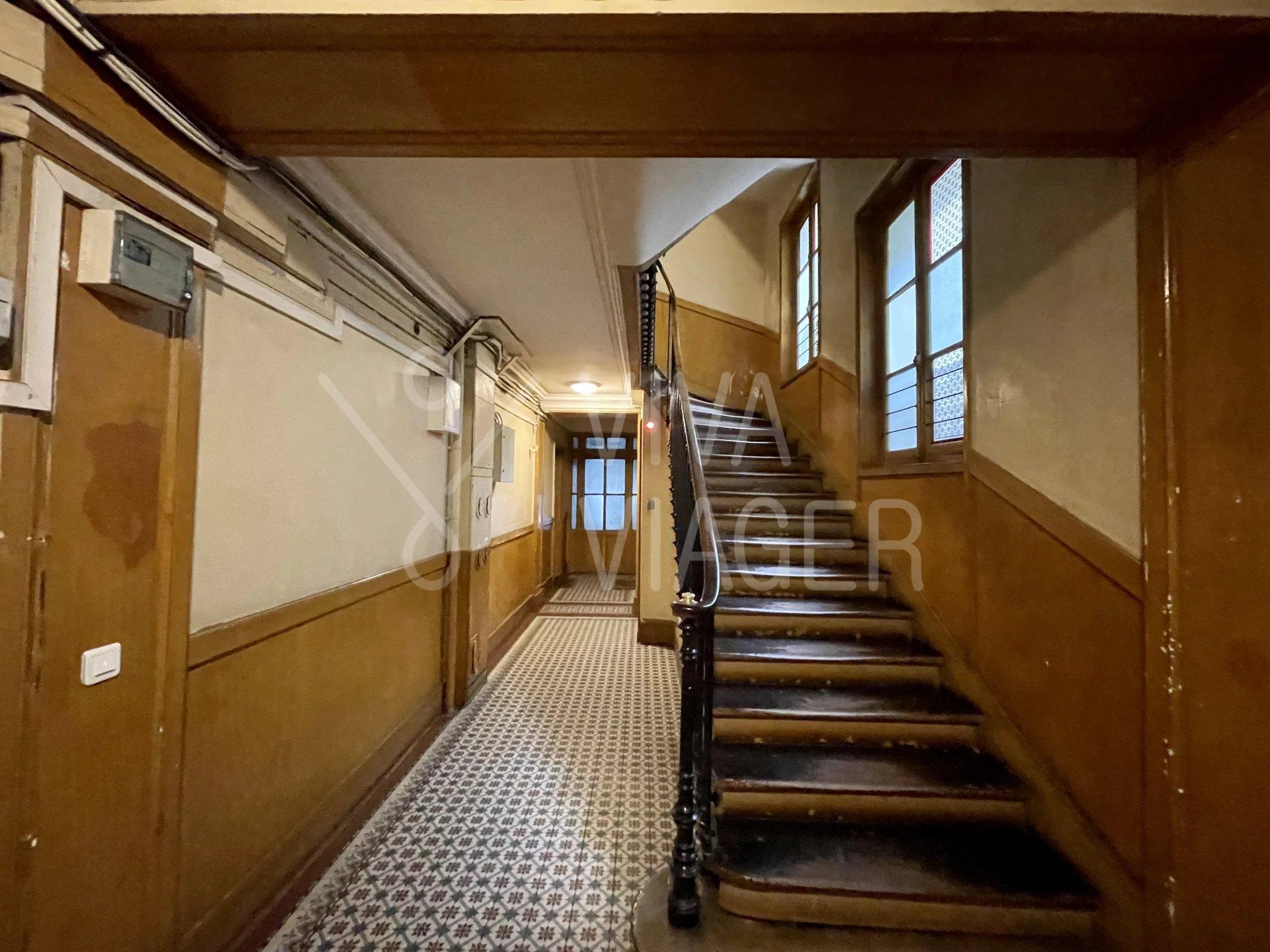 Viva Viager vous propose, un appartement traversant et au calme de 2 pièces de 36 m² au 1er étage d’un immeuble des années 1800, comprenant: