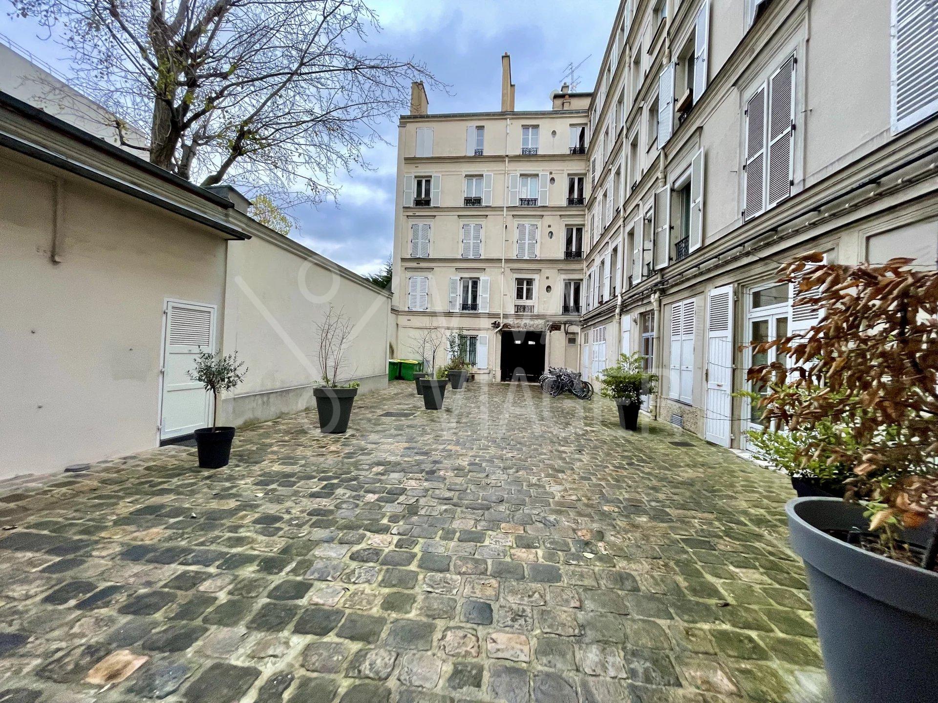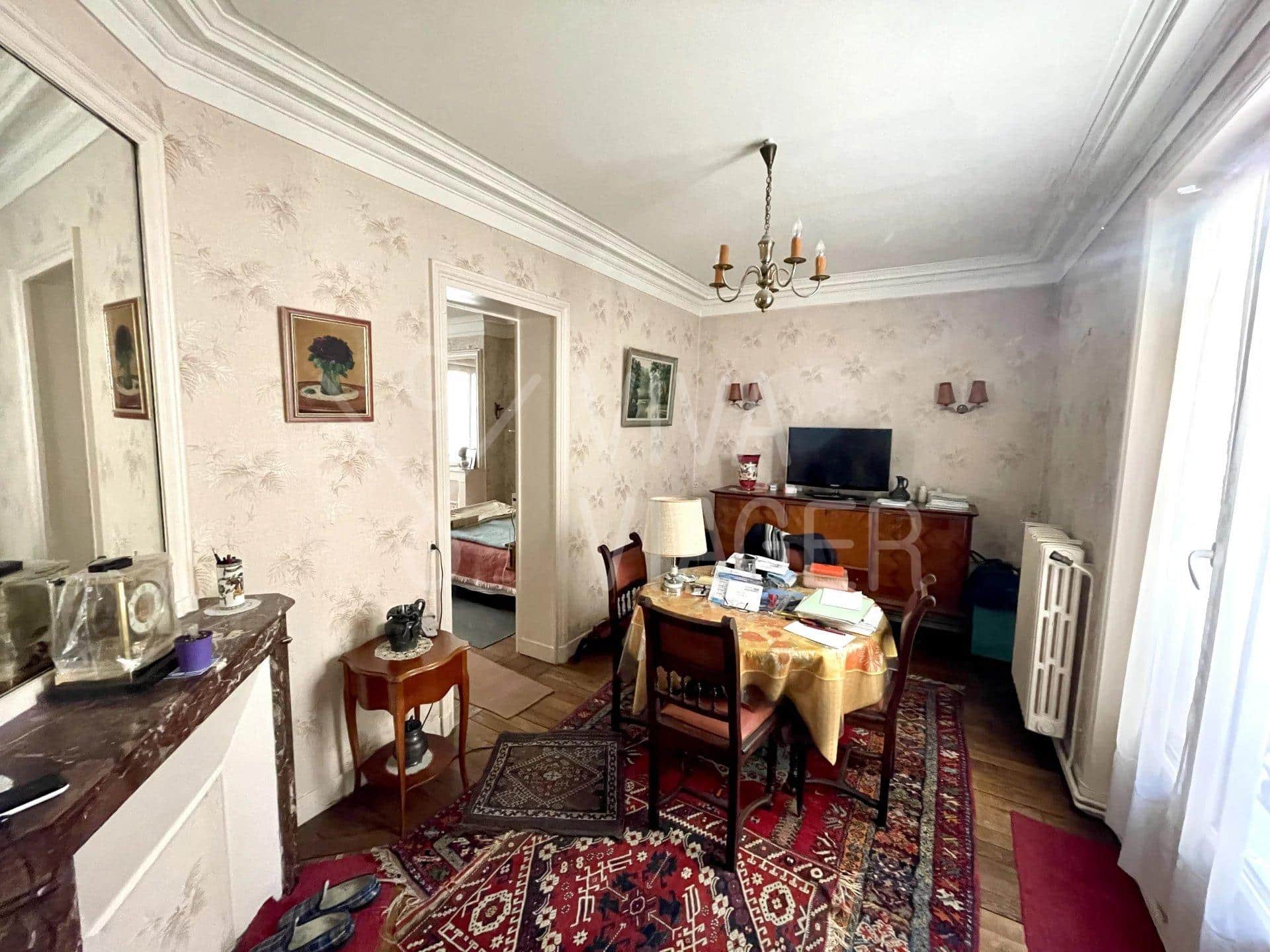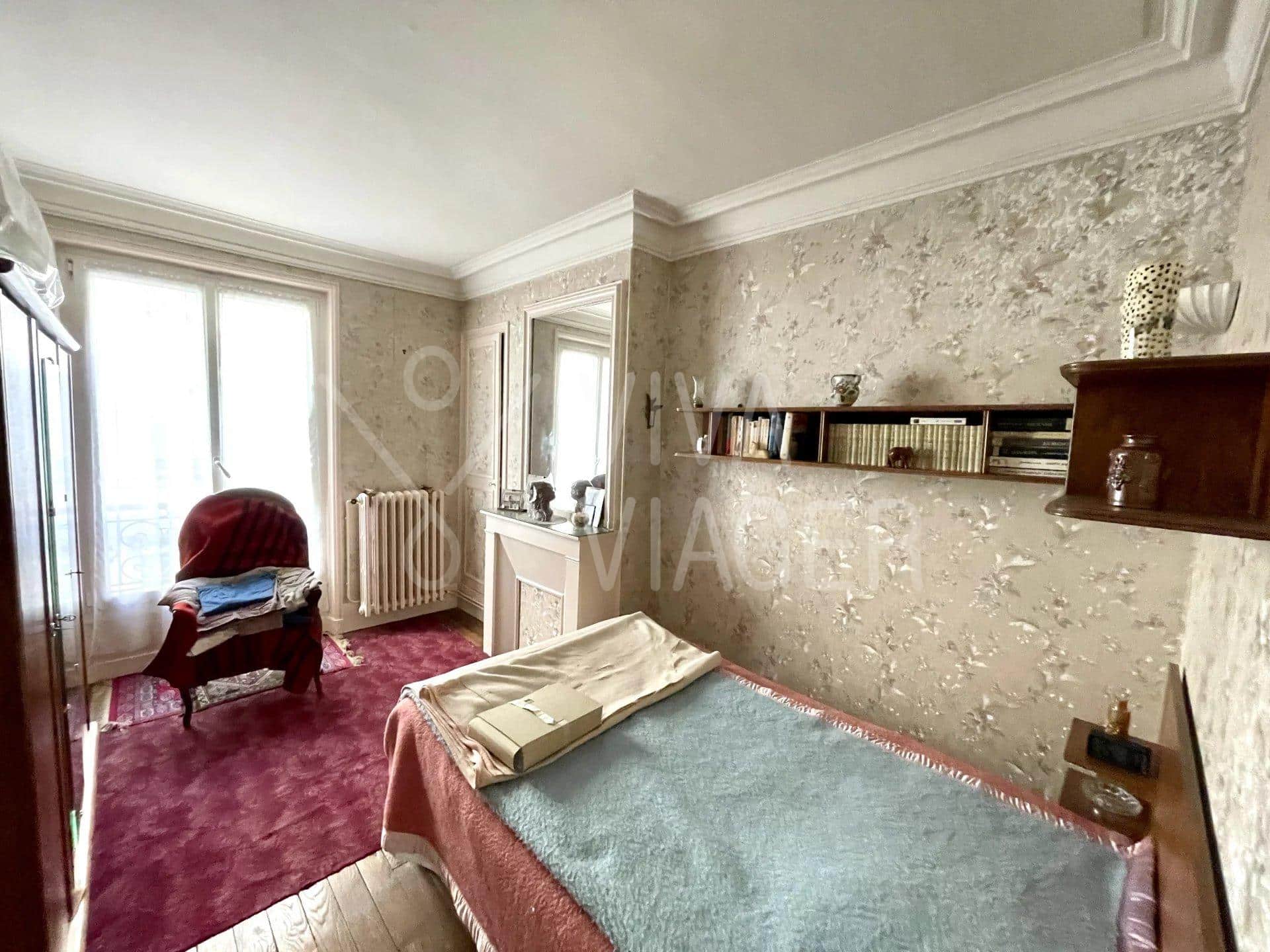Viva Viager vous propose, un appartement traversant et au calme de 2 pièces de 36 m² au 1er étage d’un immeuble des années 1800, comprenant:
