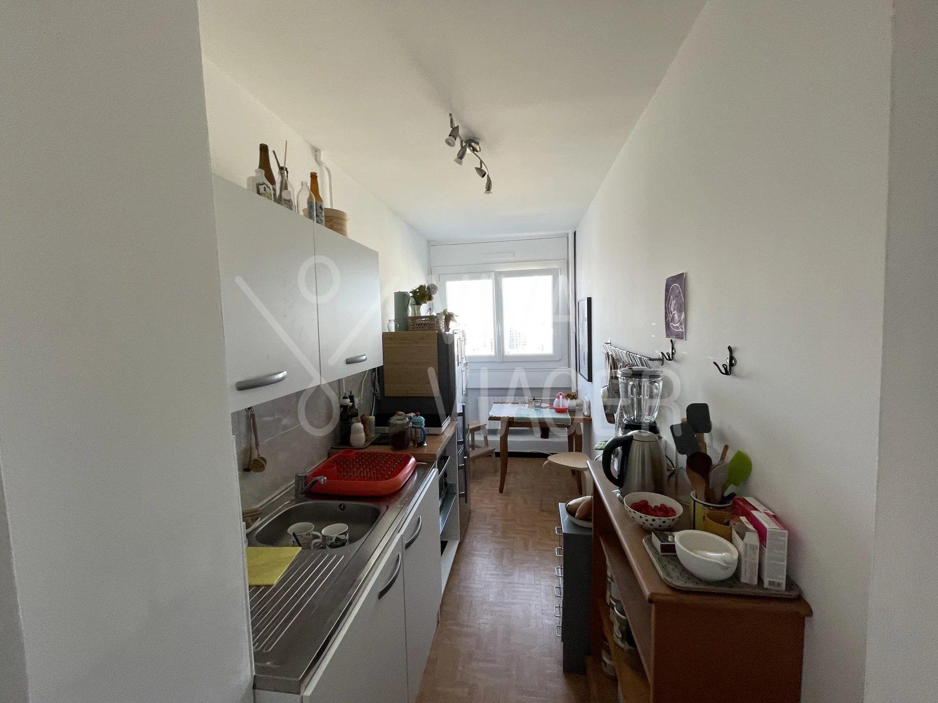 Proche transports et commerces, cet appartement situé au 14ème étage d’un immeuble sécurisé de 1974, est composé : entrée, WC séparé, salle de douche, cuisine séparée, pièce principale, chambre, et une cave.