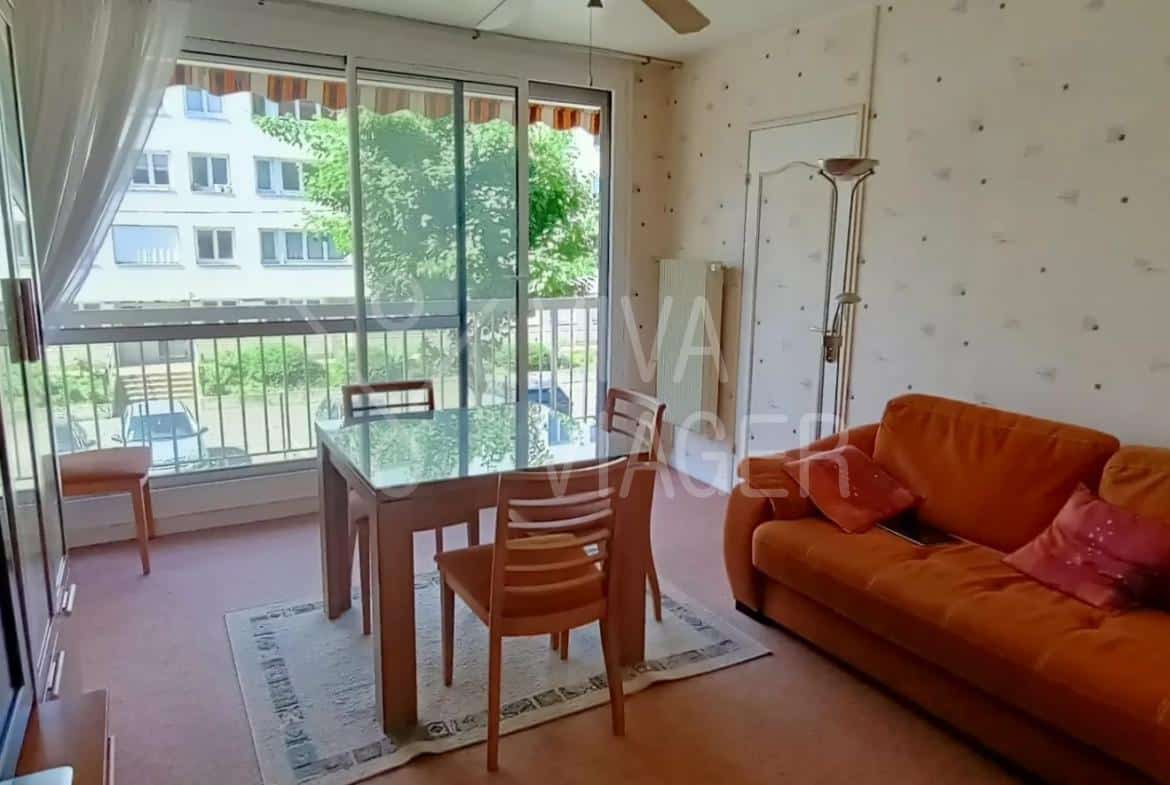 Au 1er étage, deux pièces d’environ 44 m2 composé : d’une entrée desservant d’un côté un couloir avec rangements menant à la salle de bain avec wc, et de l’autre d’un salon/salle à manger et cuisine séparée (possibilité de décloisonner), le tout avec accès sur un balcon exposé sud/ouest (store et volets roulants électrique). Une chambre de 9,73 m2 sur balcon.