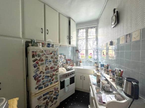 L’appartement comprend un séjour, une cuisine, deux chambres, une salle d’eau et un WC séparé. Il offre également de nombreux rangements et une cave. La toiture est neuve et la façade a été rénovée récemment.