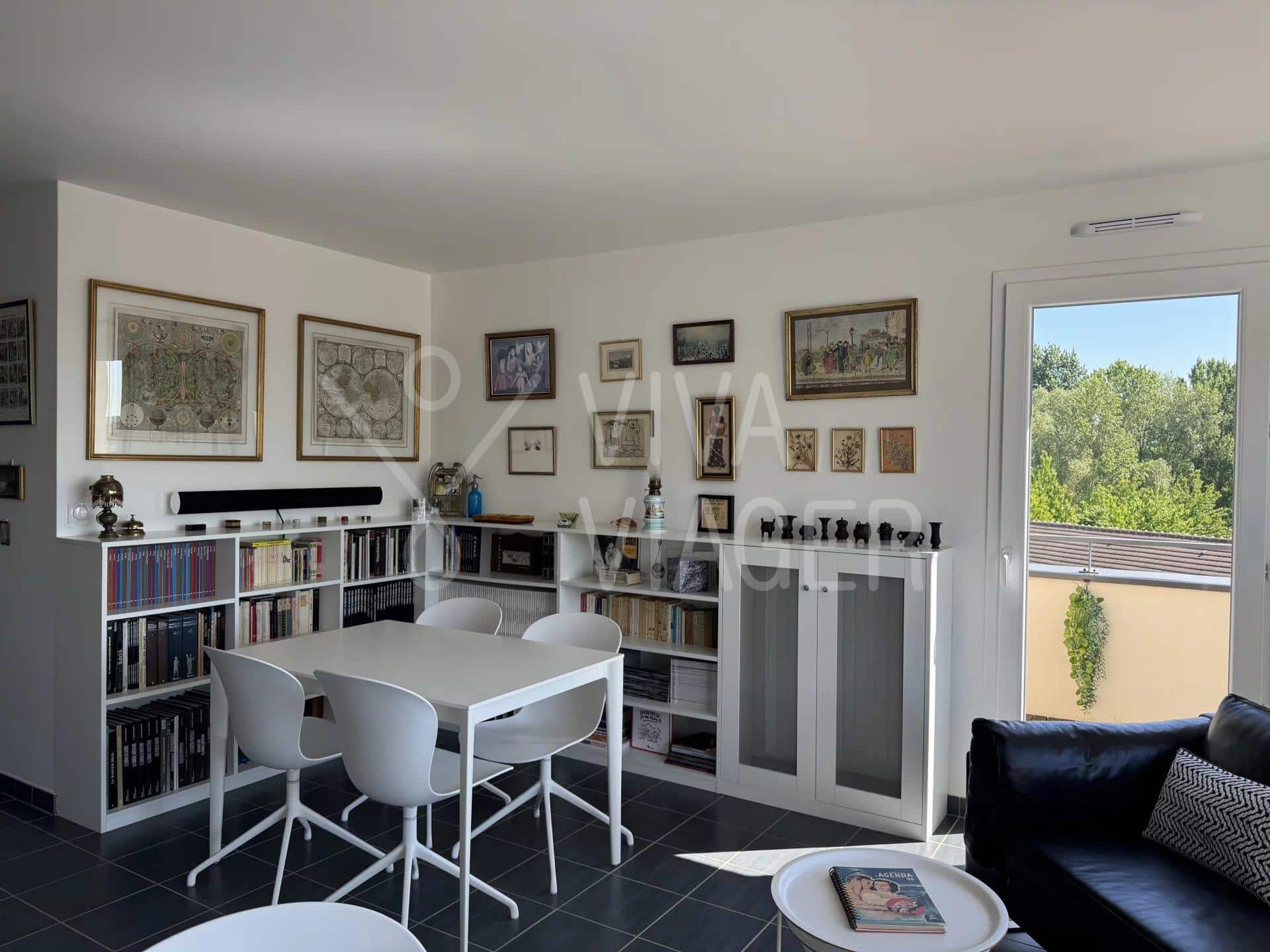 Ce bien de 62m2 se compose d’une grande entrée avec deux penderies, d’un séjour très lumineux et d’une cuisine moderne ouverte, entièrement équipée. Cette pièce principale donne accès à une agréable terrasse de 26 m2, avec double exposition sud et est. Vous y trouverez également une chambre spacieuse, un bureau ou chambre d’appoint, ainsi qu’une salle d’eau avec WC.