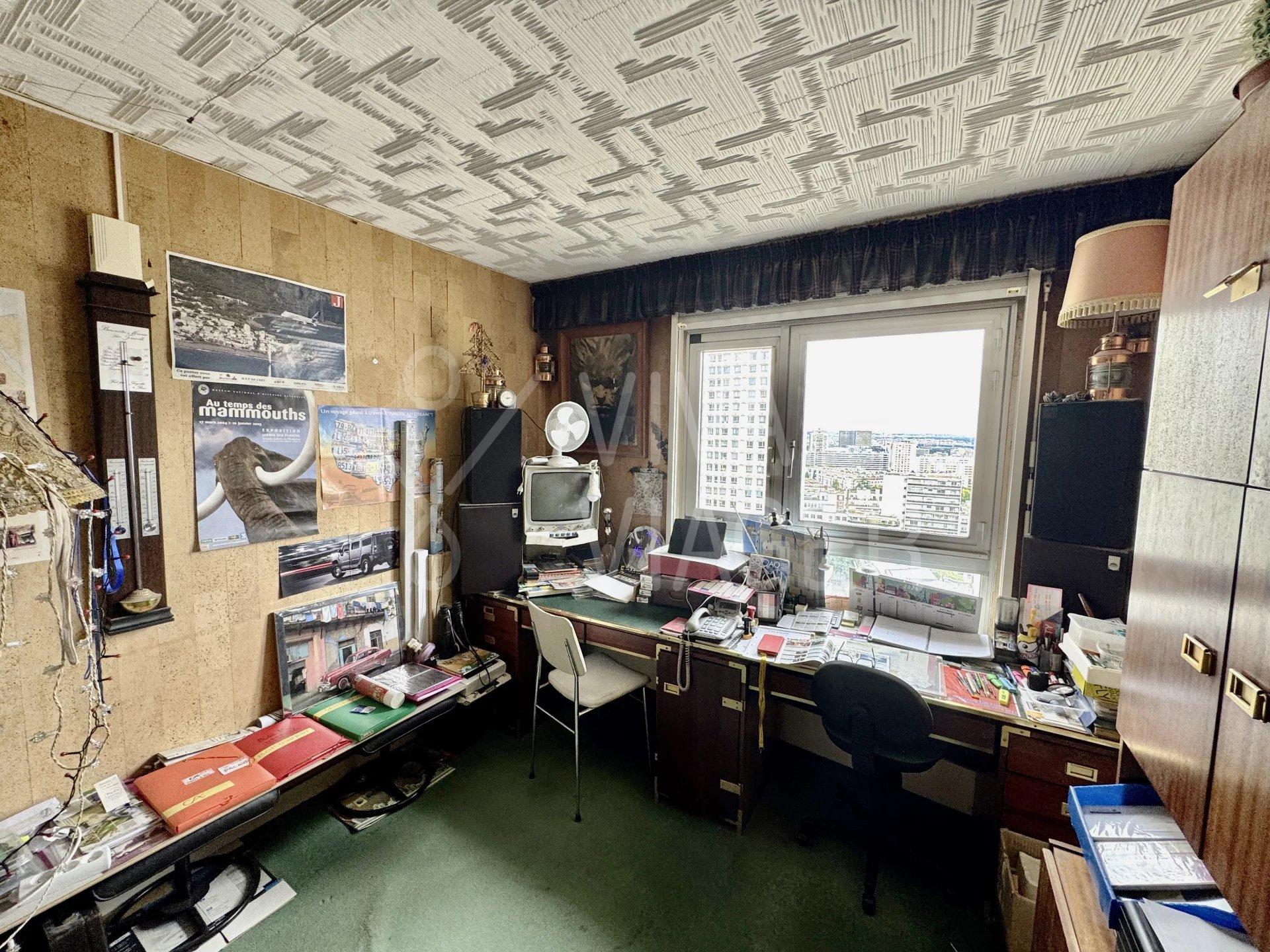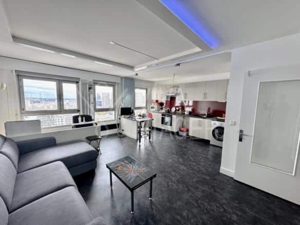 Dans la tour Jade, cet appartement de 3 pièces de 66 m², niché au 19ᵉ étage avec ascenseurs, offre une vue imprenable sur les toits de Paris, assurant luminosité et calme.