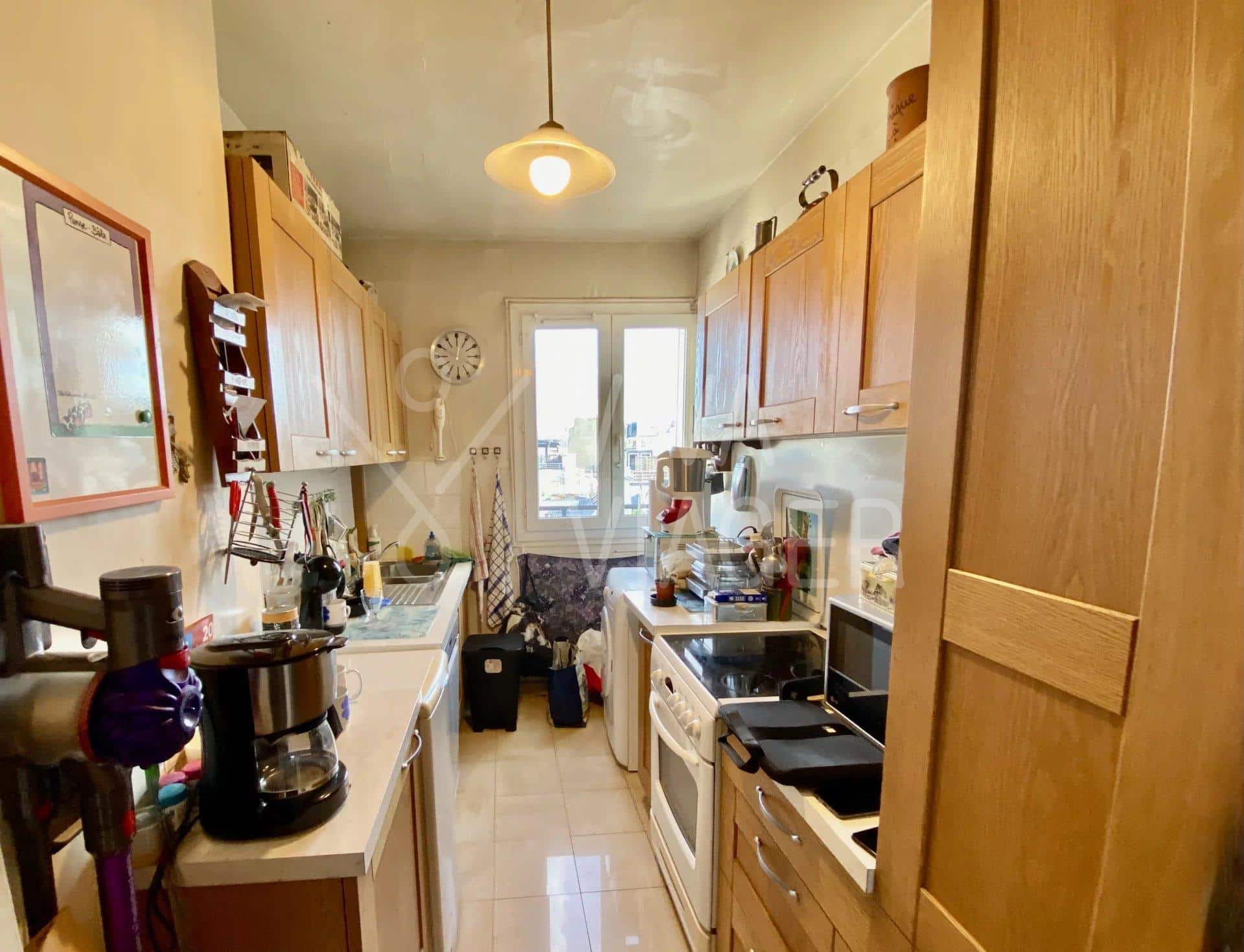 Dans un immeuble bien entretenu avec ascenseur et gardien, cet appartement sur cour, situé au 5ème étage et sans vis-à-vis, vous propose : une entrée, une cuisine indépendante qui pourrait s’ouvrir sur le séjour, un salon (ou 2ème chambre), une chambre, une salle de douche, un WC indépendant, un débarras.