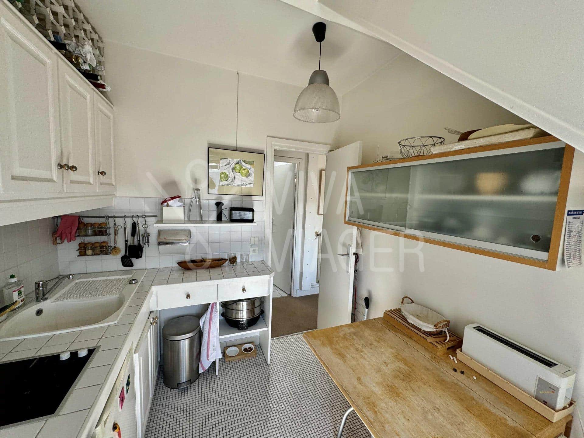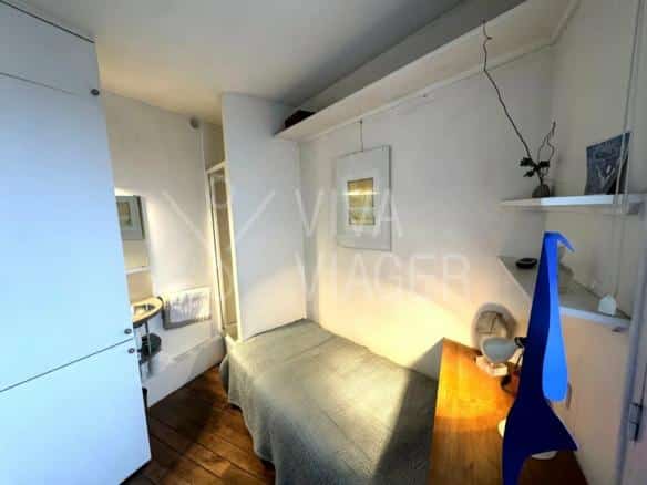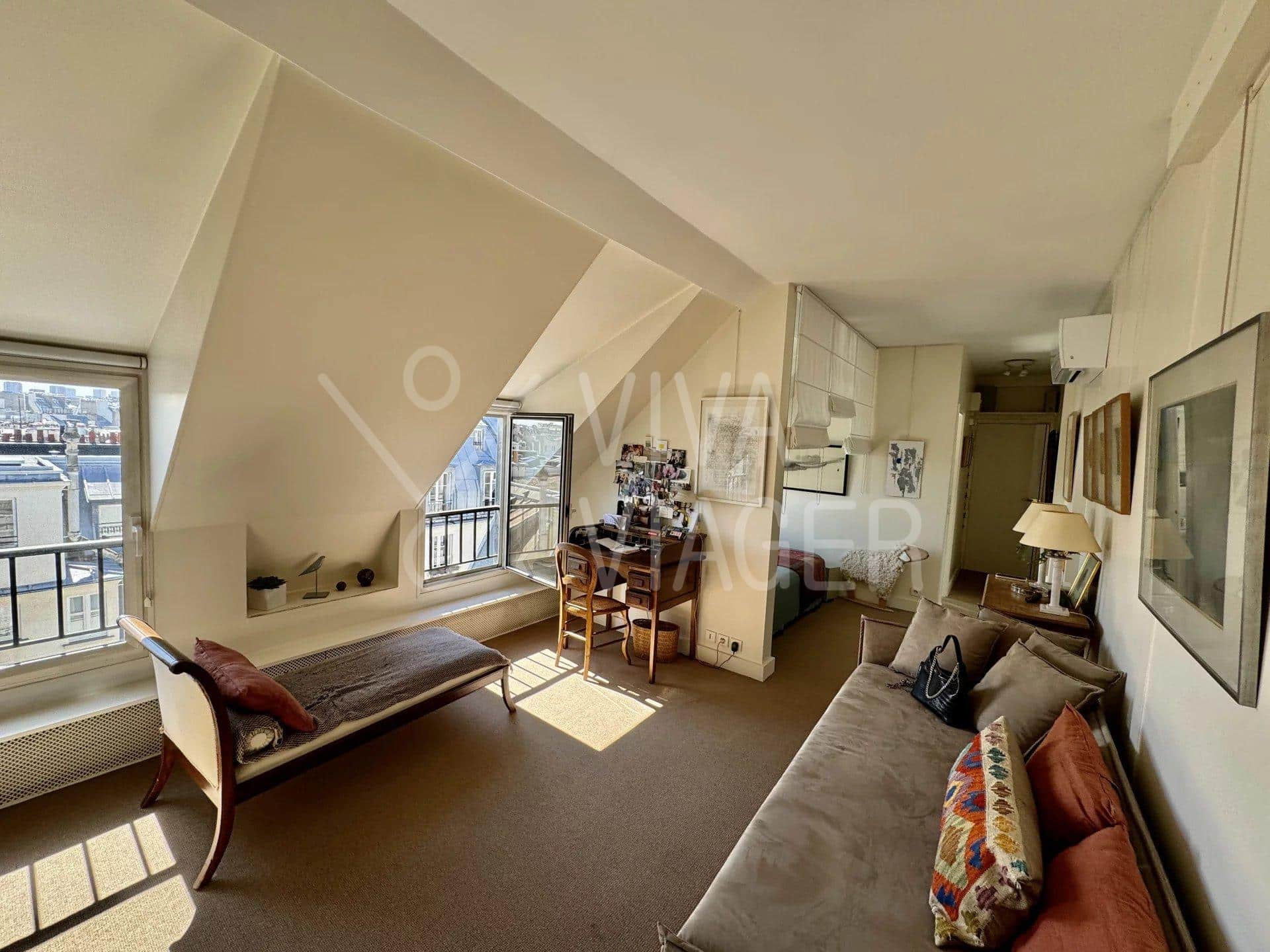 Cet appartement, issu de la réunion de deux studios, se compose de :