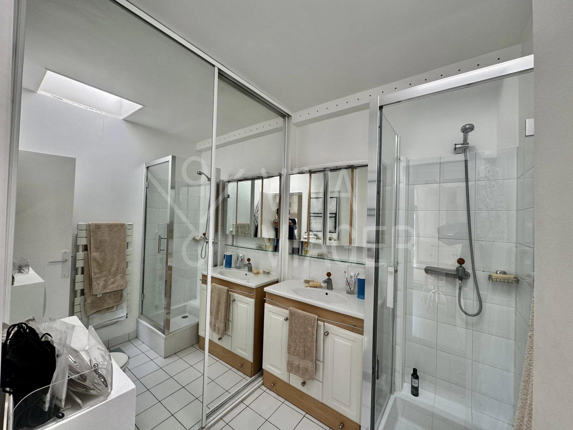 Une entrée, un vaste séjour lumineux avec possibilité de cuisine ouverte, une grande chambre(possibilité d’avoir 2 chambres), une cuisine séparée, deux salles de douche et deux WC, dont un séparé.