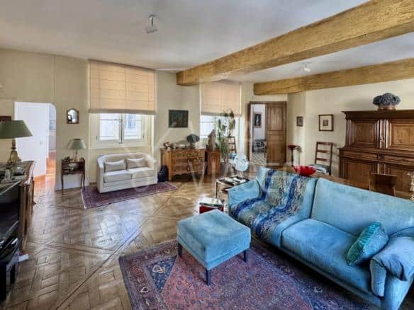 Alliant charme de l’ancien et élégance intemporelle, ce bien séduit par ses poutres apparentes, son parquet de versailles d’origine, les volets intérieurs, sa cheminée et sa belle hauteur sous plafond, qui lui confèrent une atmosphère unique et chaleureuse.
