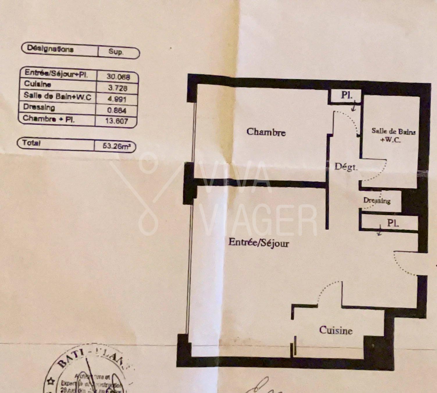 Cet appartement de 2 pièces de 53 m² situé au 16ème étage, se compose d’une entée, un séjour, une cuisine, une chambre, une salle de bain avec WC et d’un dressing.