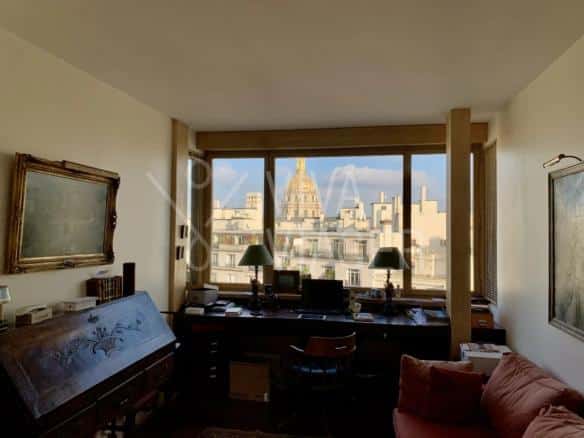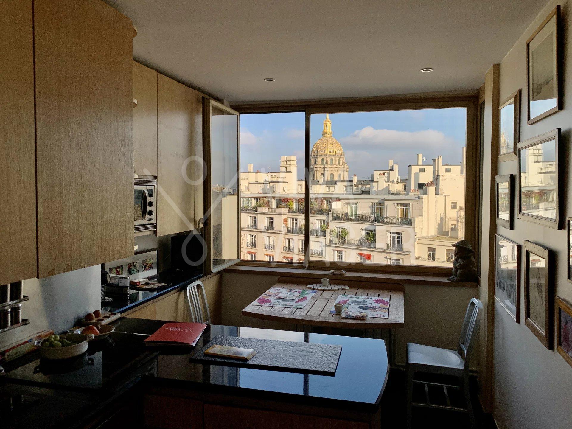 Viva Viager vous propose la nue-propriété d’un magnifique appartement traversant de 3 pièces de 89m² aux 9ème et derniers étages, avec vue sur la Dôme des Invalides et de la tour Eiffel, à deux pas du Champ de Mars