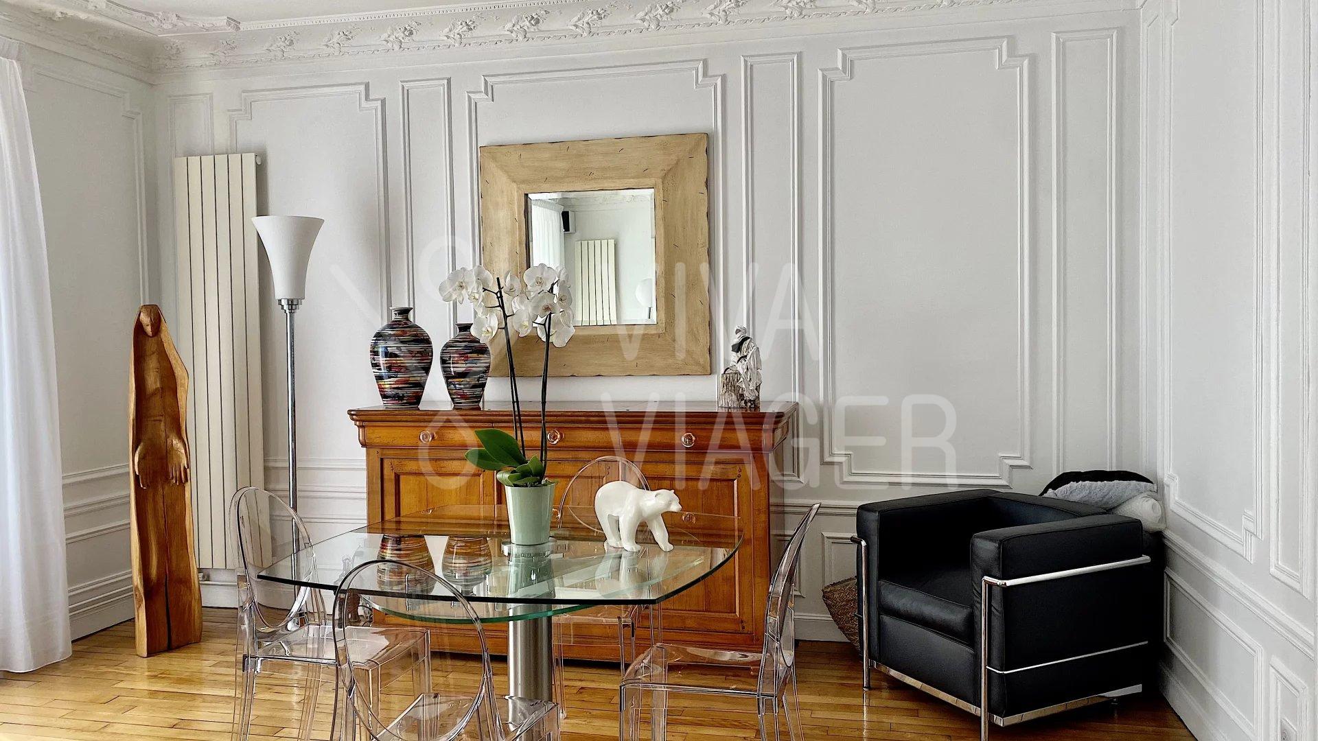Bd Brune, dans un bel et ancien immeuble de standing, au 2ème étage avec ascenseur, un appartement traversant exposé sud et sans vis-à-vis et en parfait état de quatre pièces comprenant: