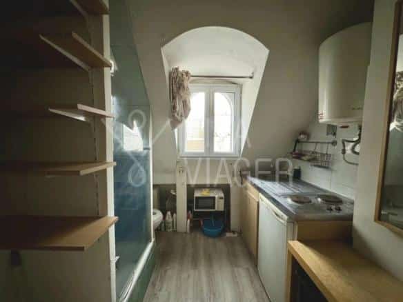 Dans un immeuble Pierre de Taille, au 6ème et dernier étage, une chambre de service d’environ 10m2 au sol avec lavabo, douche et WC sanibroyeur. Vous avez également la jouissance de 2 WC sur le palier.