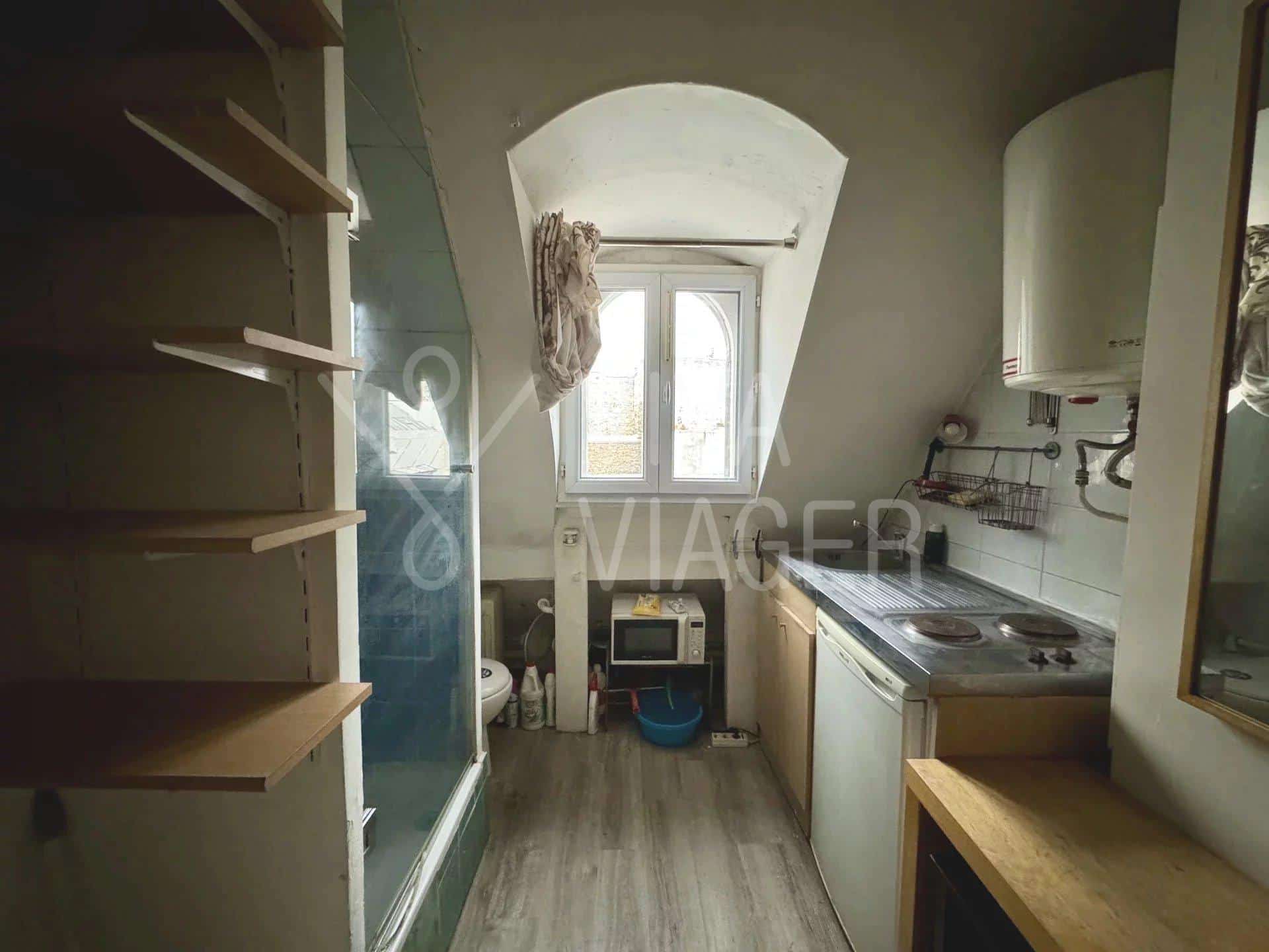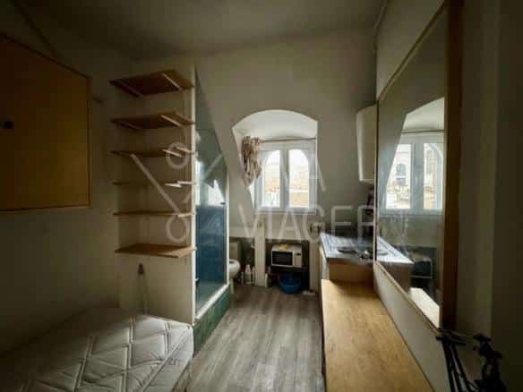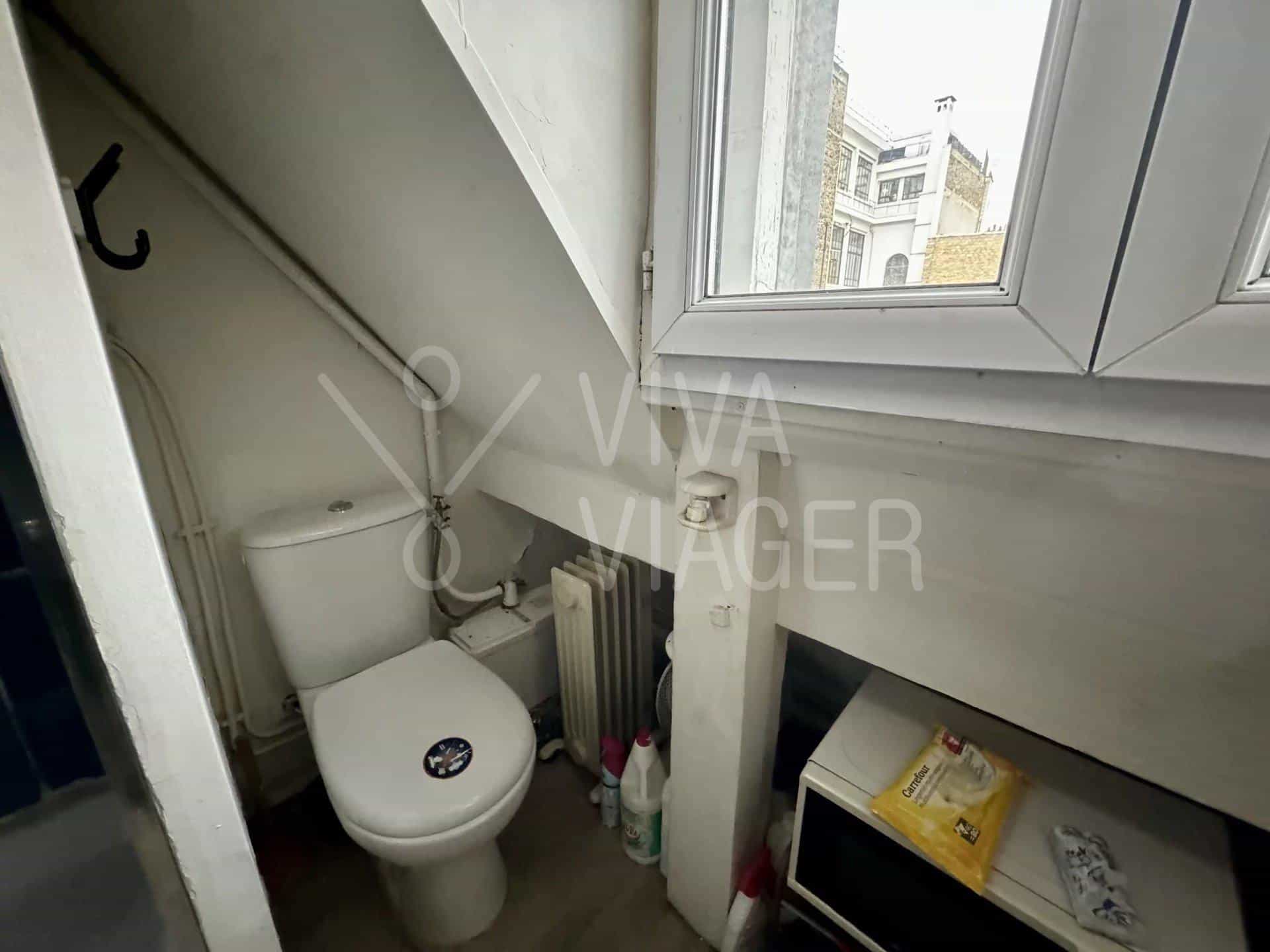 Dans un immeuble Pierre de Taille, au 6ème et dernier étage, une chambre de service d’environ 10m2 au sol avec lavabo, douche et WC sanibroyeur. Vous avez également la jouissance de 2 WC sur le palier.