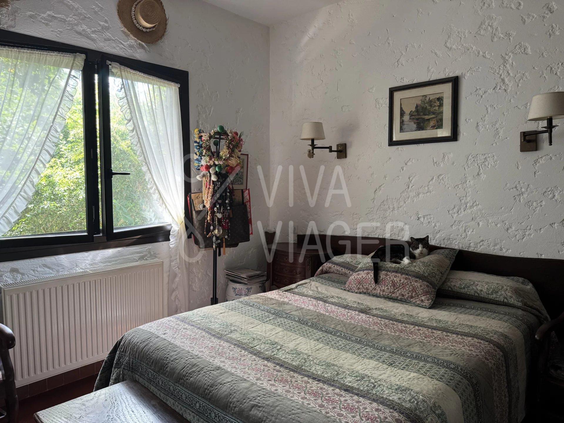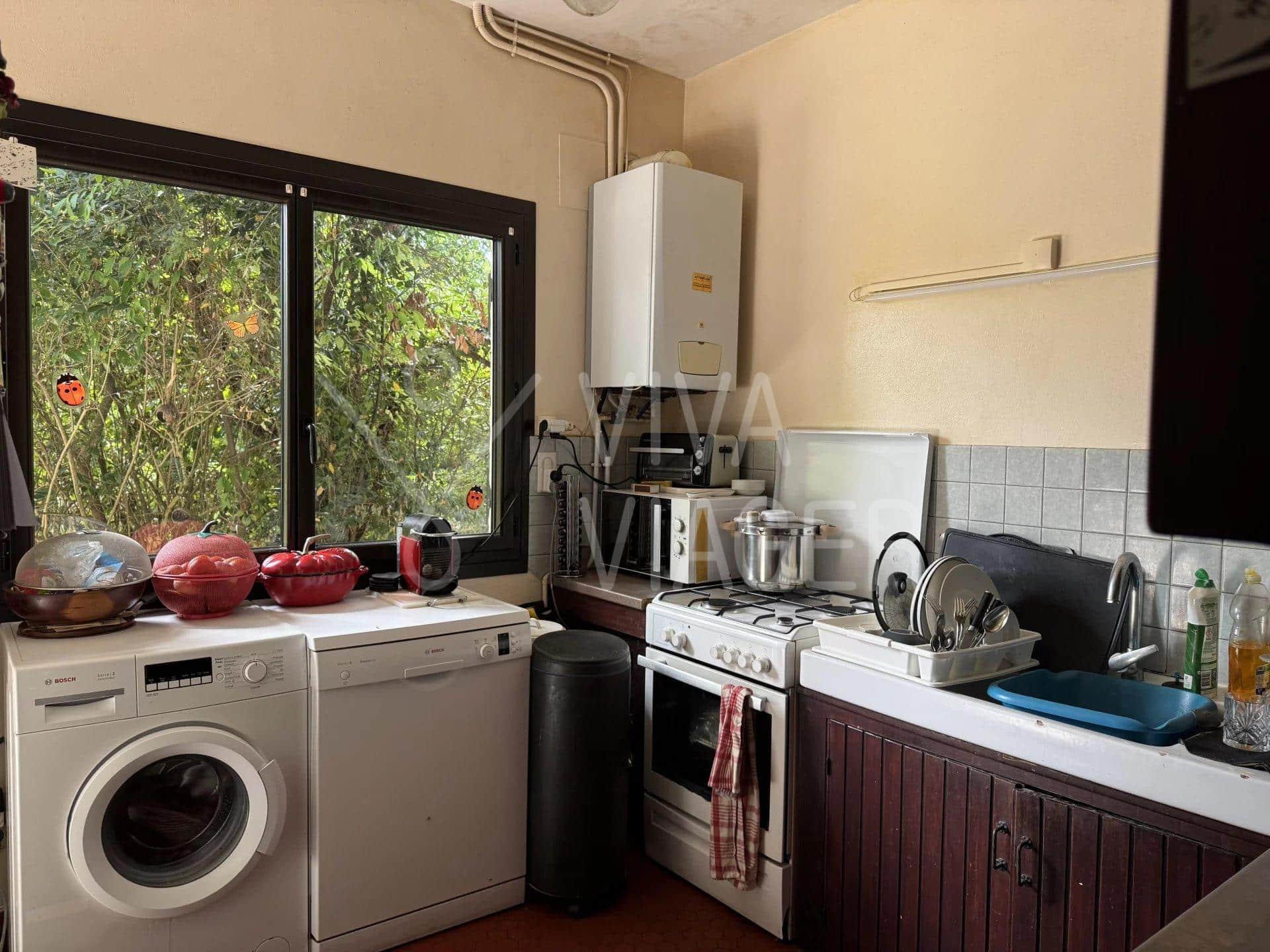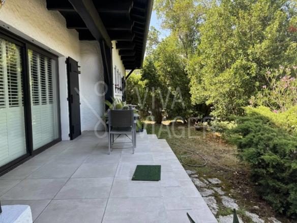 D’une surface de 74 m2, elle se décompose en trois pièces principales. L’entrée mène a un beau séjour traversant avec poutres apparentes, ouvrant sur la terrasse et la verdure extérieure. Une cuisine équipée, deux belles chambres, ainsi qu’une salle de bain et des WC séparés se rajoutent à cet espace. Enfin, un garage de 20 m2 complète le bien.