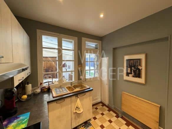 Elle est composée d’une entrée, séjour et salle à manger, une salle de bain avec WC, 2 chambres, d’une cuisine complètement équipée et neuve séparée donnant sur 1 véranda.