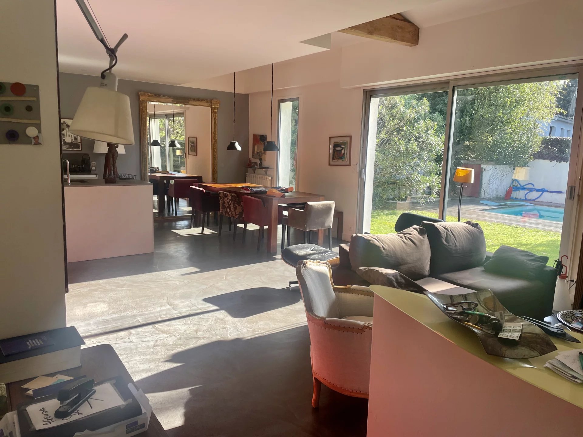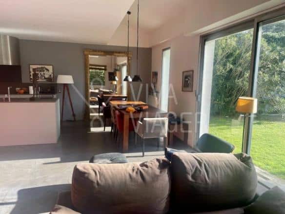 À l’extérieur, vous pourrez profiter d’une piscine de dimensions généreuses (8×4 mètres), d’un garage pour scooter de 19 m², d’un espace extérieur équipé d’une plancha, et d’un charmant chalet en bois, ajoutant du cachet à cette propriété.