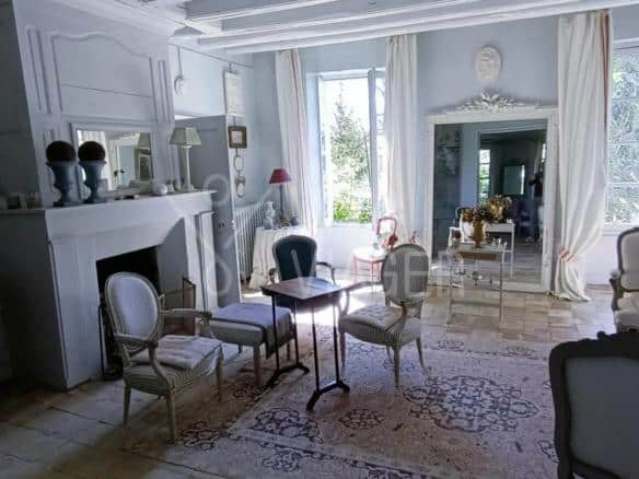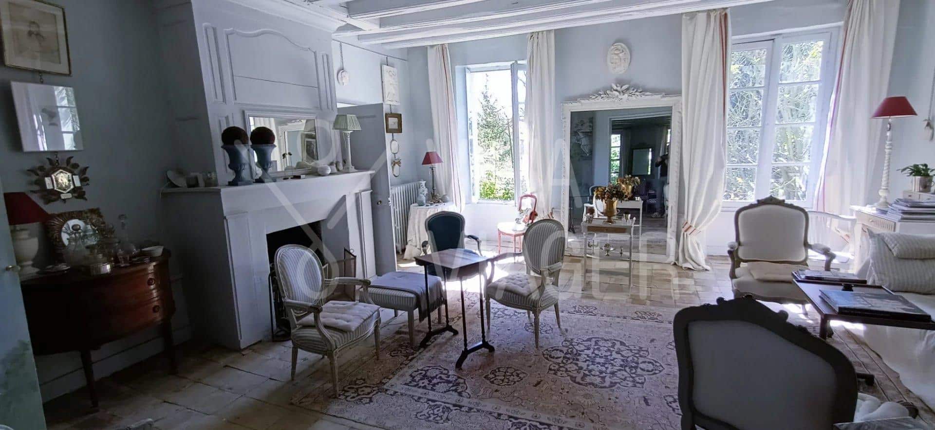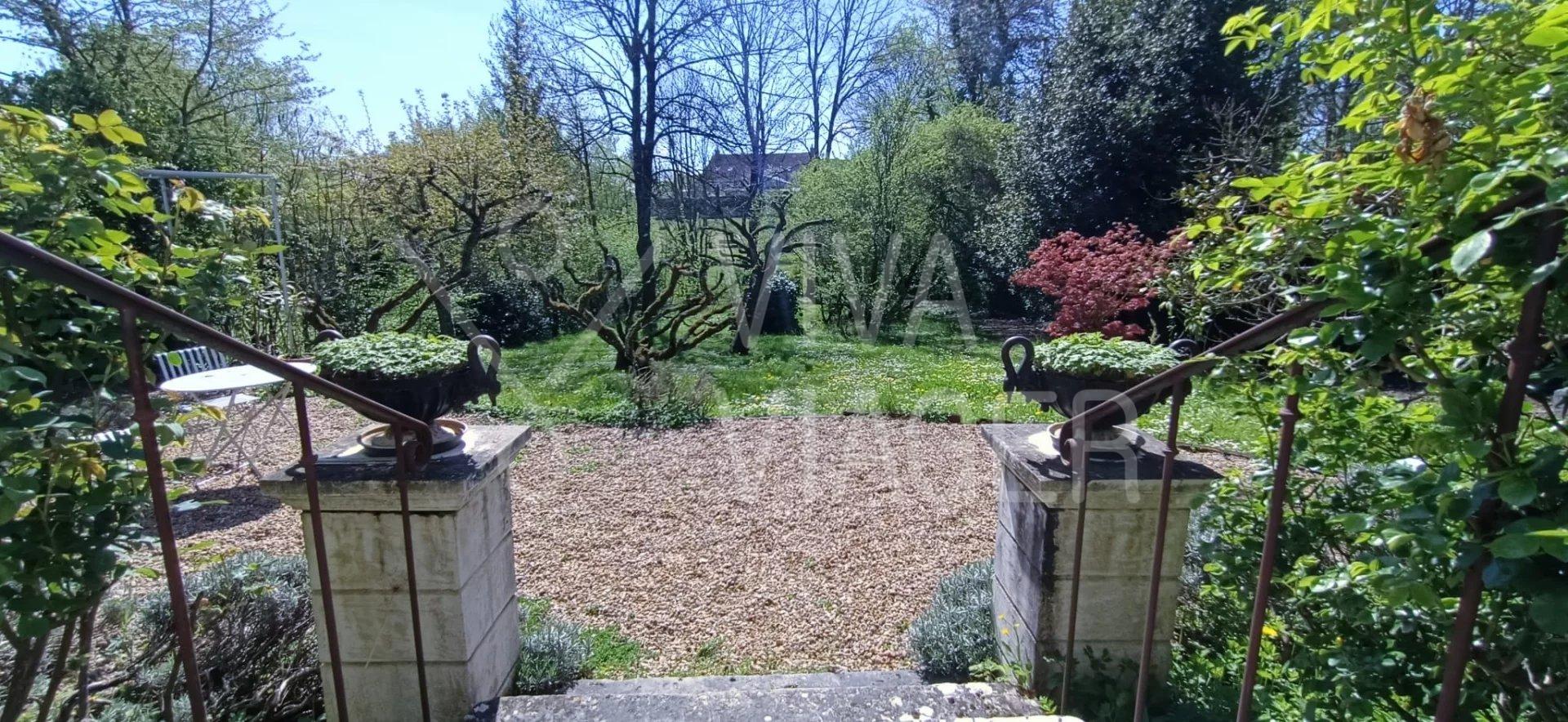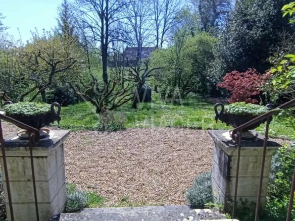 Sur une parcelle de 1025 m2, cette demeure de 8 pièces de 264 m2, habitable en pierre de tuffeau, s’élève sur deux niveaux, avec dépendances, jardins devant et derrière.