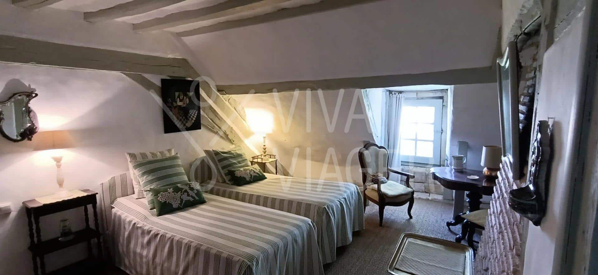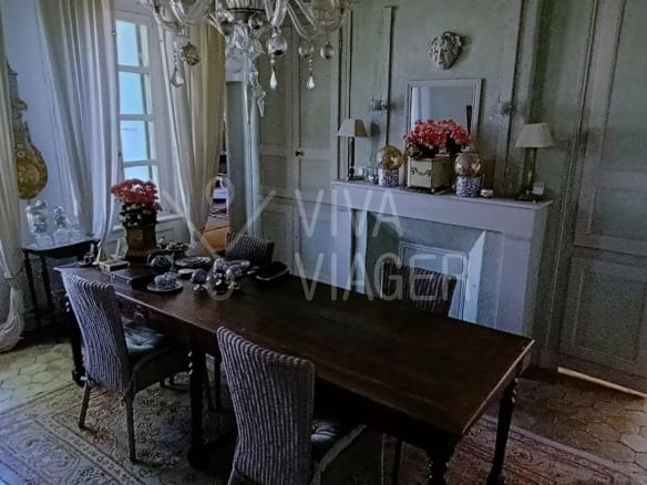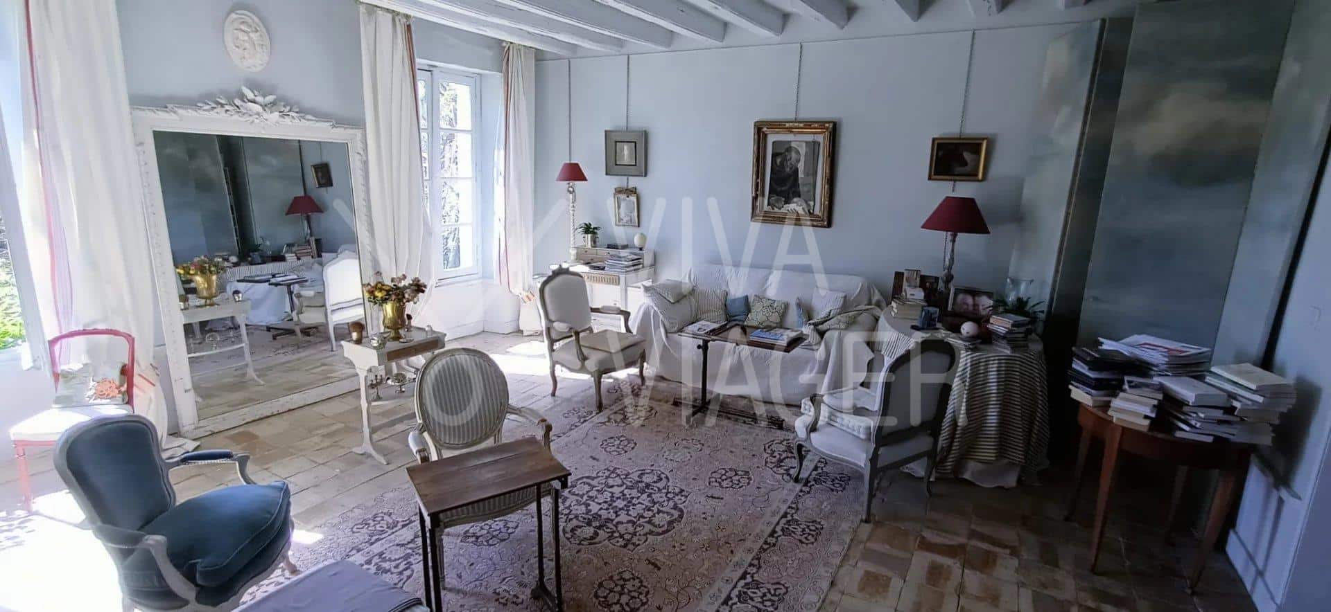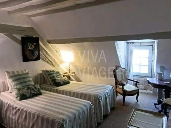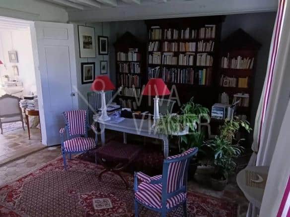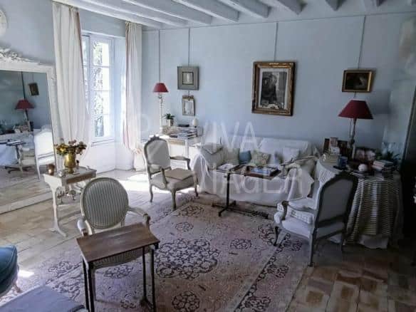 Un vaste grenier aménageable court sous la toiture refaite il y a 10 ans (plus une reprise finale il y a 2 ans). Cette bâtisse est composée de quatre chambres avec chacune une salle de bain, bureau, salon, salle à manger, cuisine, office, boudoir, lingerie, atelier, garage, deux caves, cour sur le devant, à l’arrière de la maison, donnant sur le jardin et la campagne, une grande terrasse orientée plein sud avec une tonnelle ombragée, un puits.
