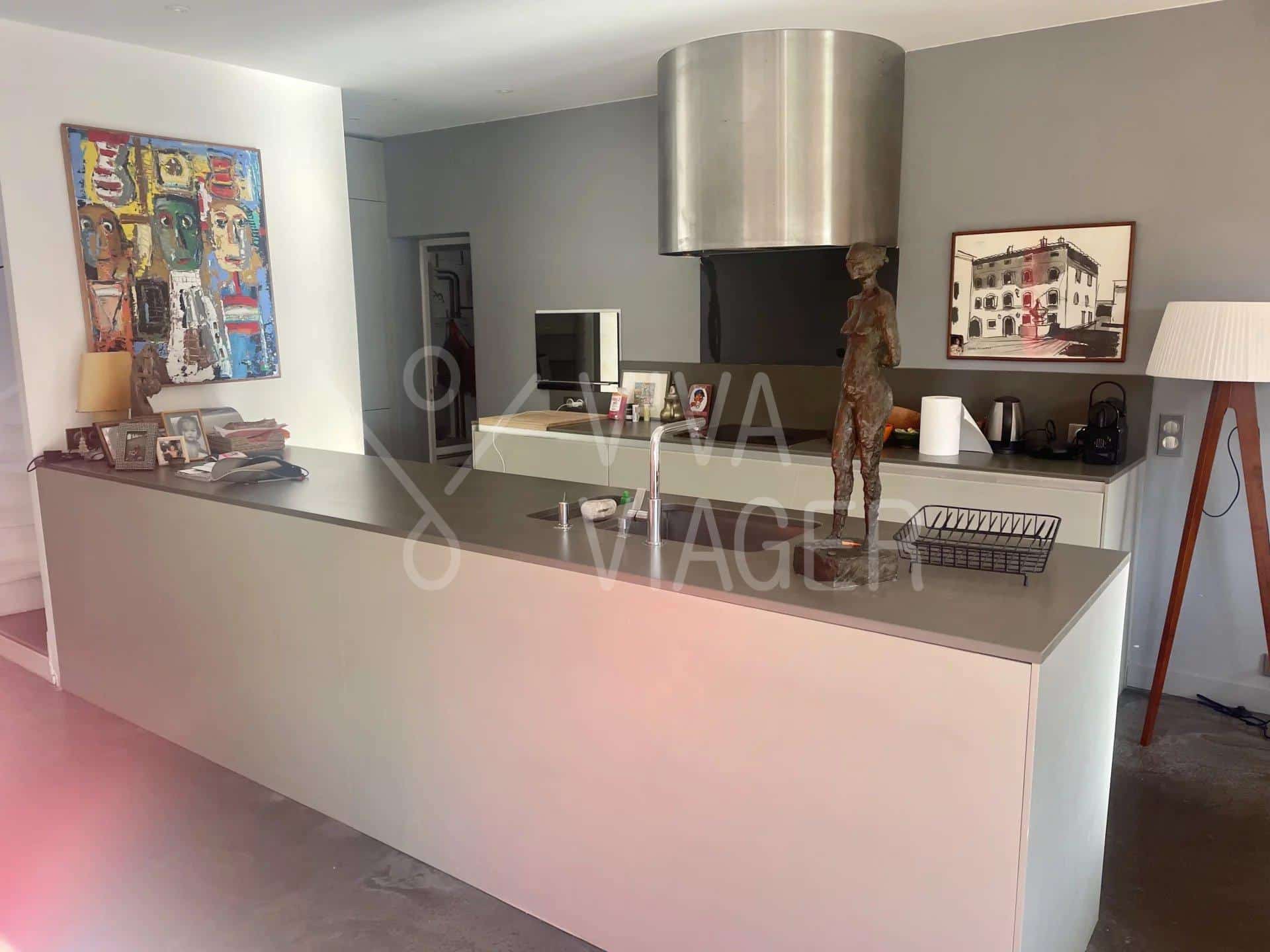 À l’extérieur, vous pourrez profiter d’une piscine de dimensions généreuses (8×4 mètres), d’un garage pour scooter de 19 m², d’un espace extérieur équipé d’une plancha, et d’un charmant chalet en bois, ajoutant du cachet à cette propriété.