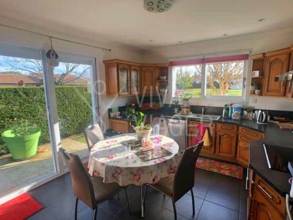 VIVA VIAGER vous propose, une maison de plain-pied située à Saujon, station thermale à 15min des plages, d’environ 120m² habitable sur un terrain d’environ 550 m².