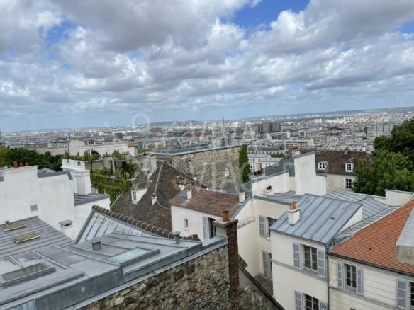Viva Viager vous propose, Rue Cortot ( la butte Montmartre) à deux pas du Sacré-Coeur, au 5ème étage dans un immeuble de 1925, un studio de 30m² lumineux avec une vue dégagée.