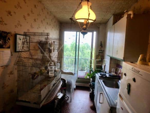Situé au 3ème étage d’un immeuble de 1971, avec une vue dégagée, Il est composé d’une entrée, SDD avec WC, cuisine séparée, une pièce principale, un balcon filant de 8 m², et une cave.
