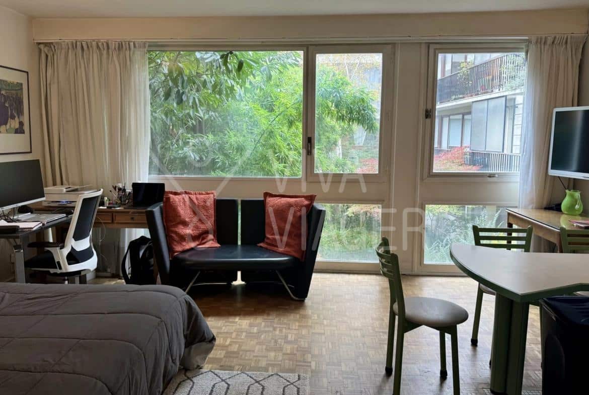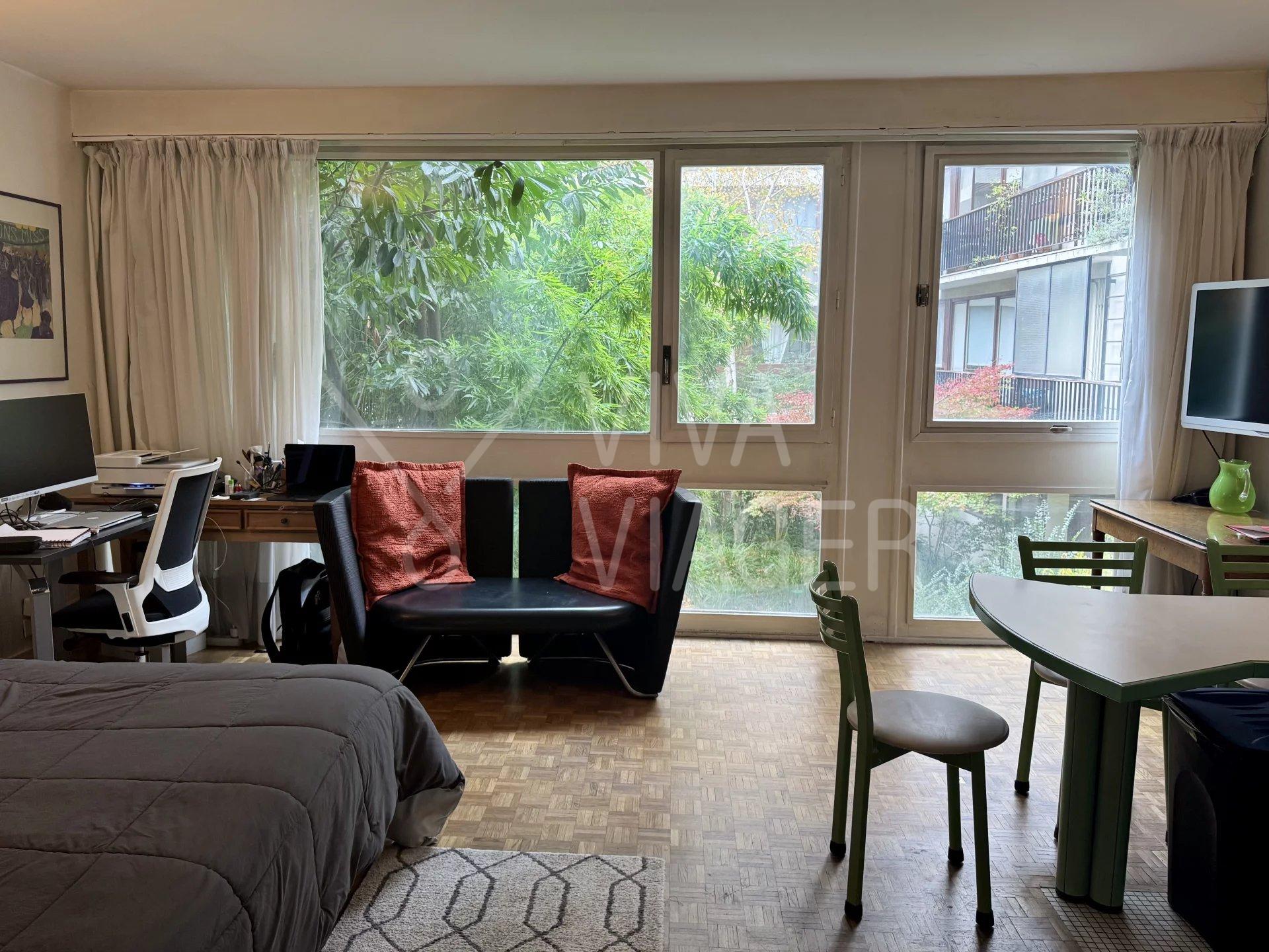 Ce studio de 36m², situé au 1er étage d’une copropriété bien entretenue, se compose d’une entrée, ouvrant sur une pièce de vie lumineuse avec vue sur jardin et cuisine ouverte, ainsi que sur une salle de douche rénovée en début d’année, un WC et une buanderie séparées.
